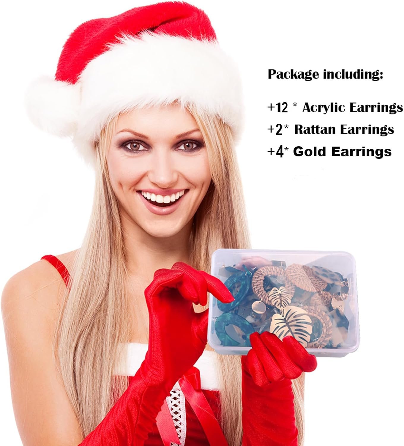 13 pairs of acrylic bohemian earrings,3 pairs of rattan earrings,1 Jewelry collection box for gifting.