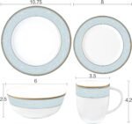 Customers find the dinnerware set beautiful, with one mentioning its soft blue color with gold accents. They appreciate its durability, with one customer noting its different sizes are very durable. Customers also like its lightweight design and consider it worth the price.