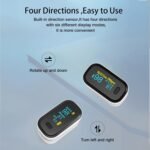 【ADJUSTABLE DISPLAY】After powering on the pulse ox, you can quick press once to change display direction (4 directions in total). Multi way for reading covenience.