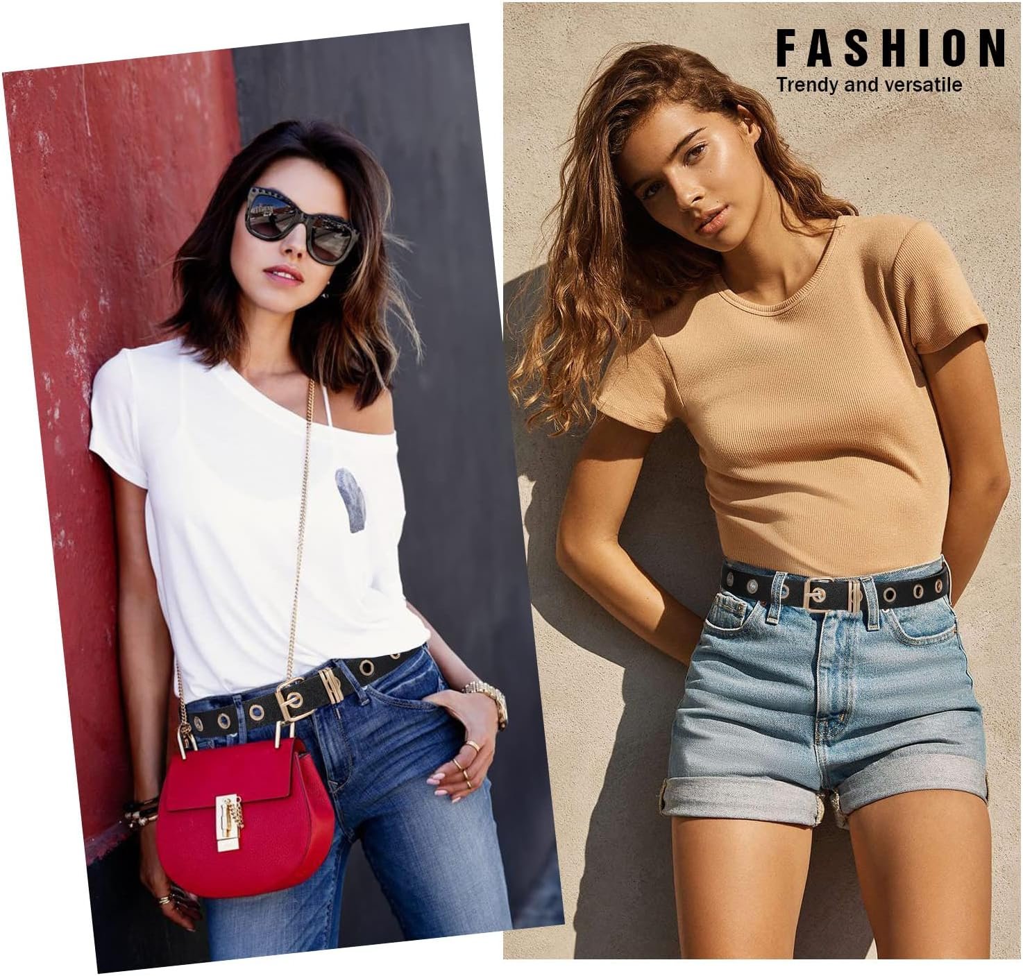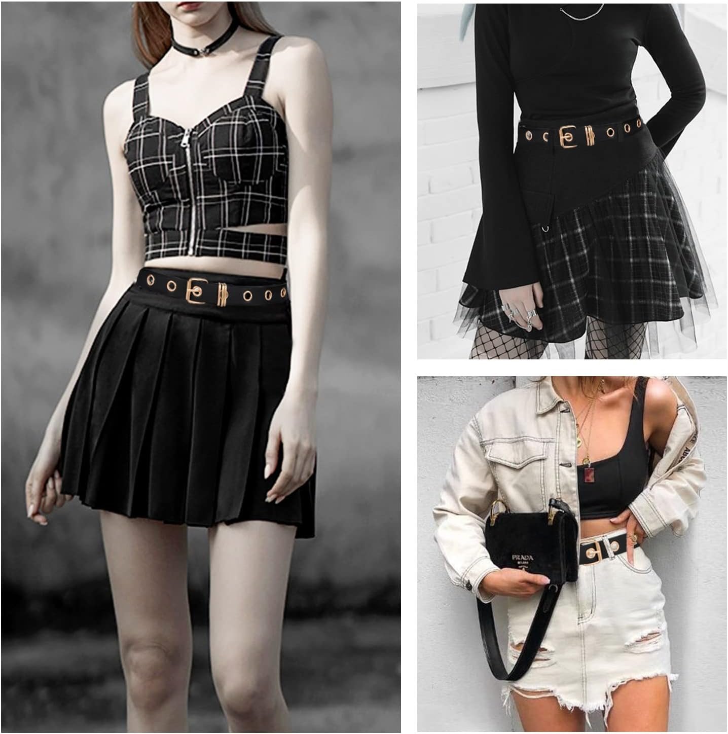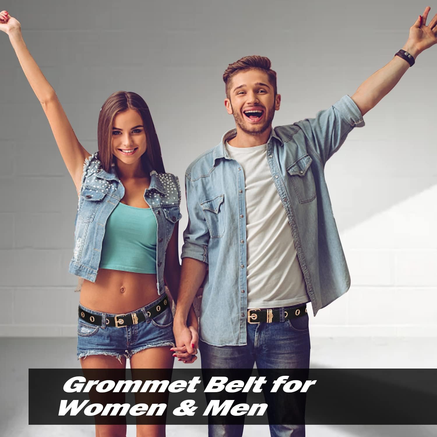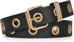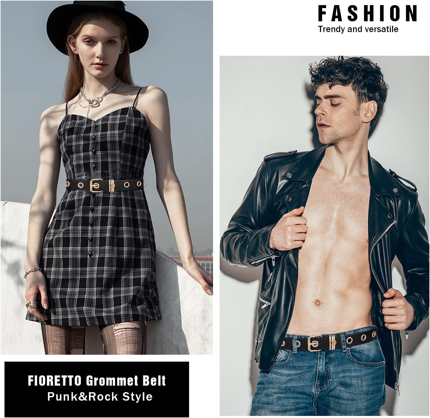 FIORETTO Grommet Leather Belt with Detachable Chain Women Men Punk Rock Waist Belts for Jeans Pants
