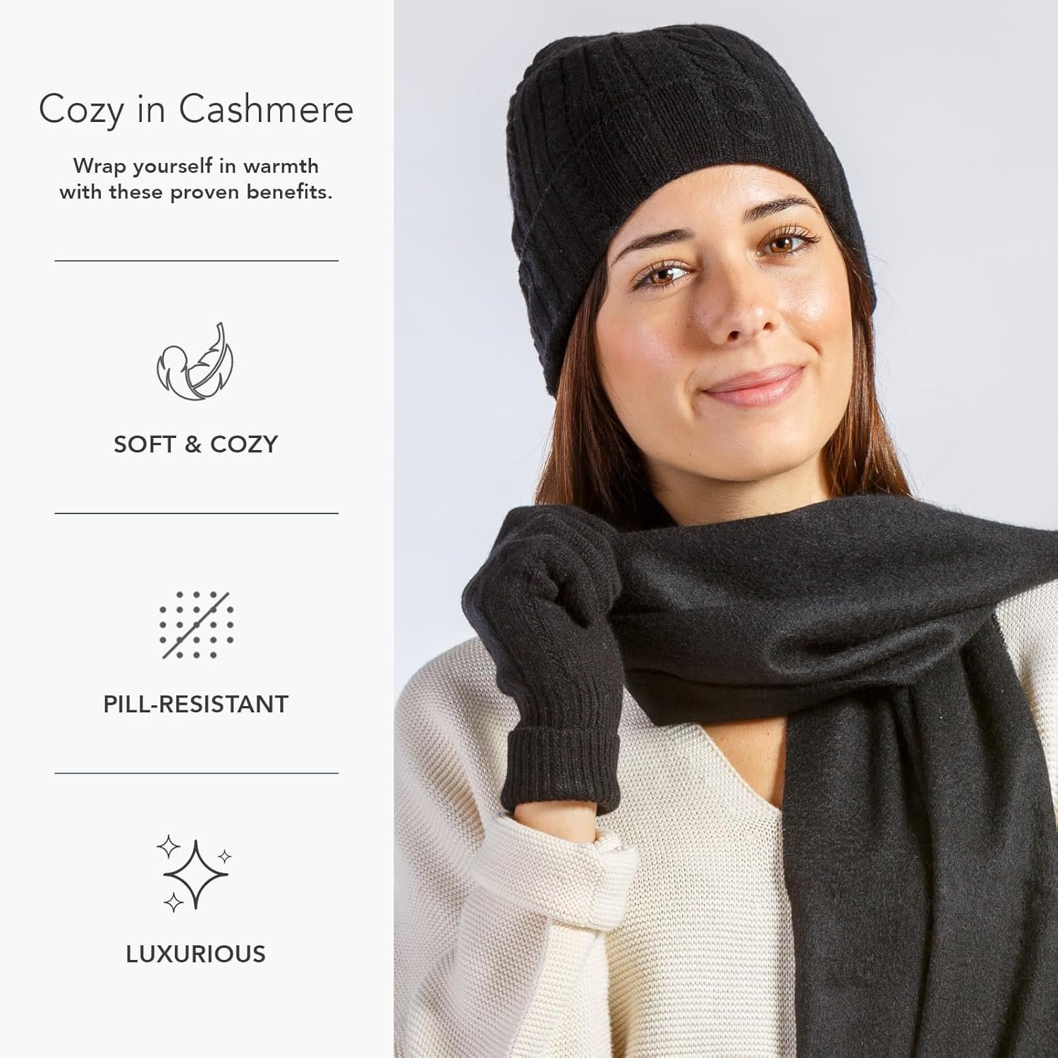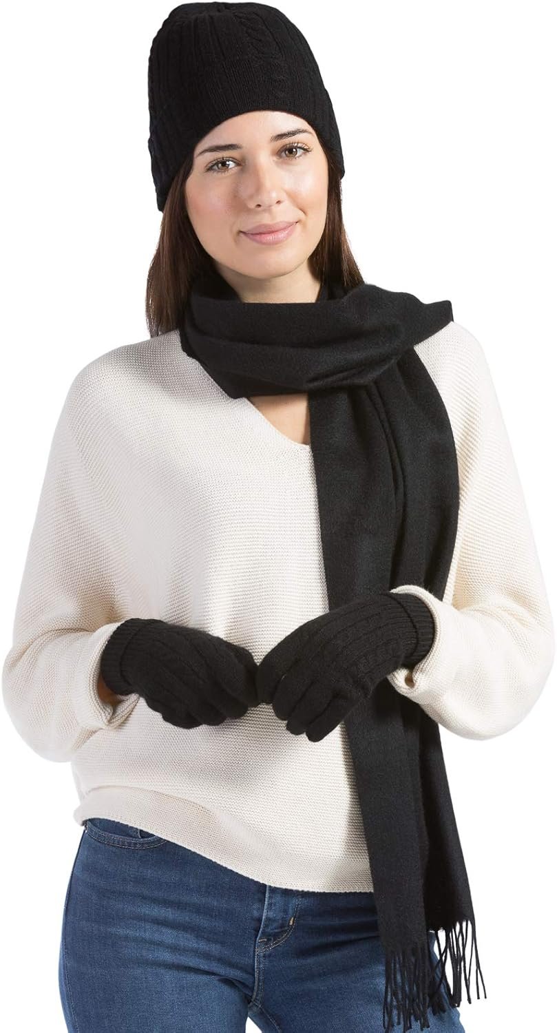 Fishers Finery Women’s 100% Cashmere 3pc Hat Glove and Scarf Set; with Exquisite Box
