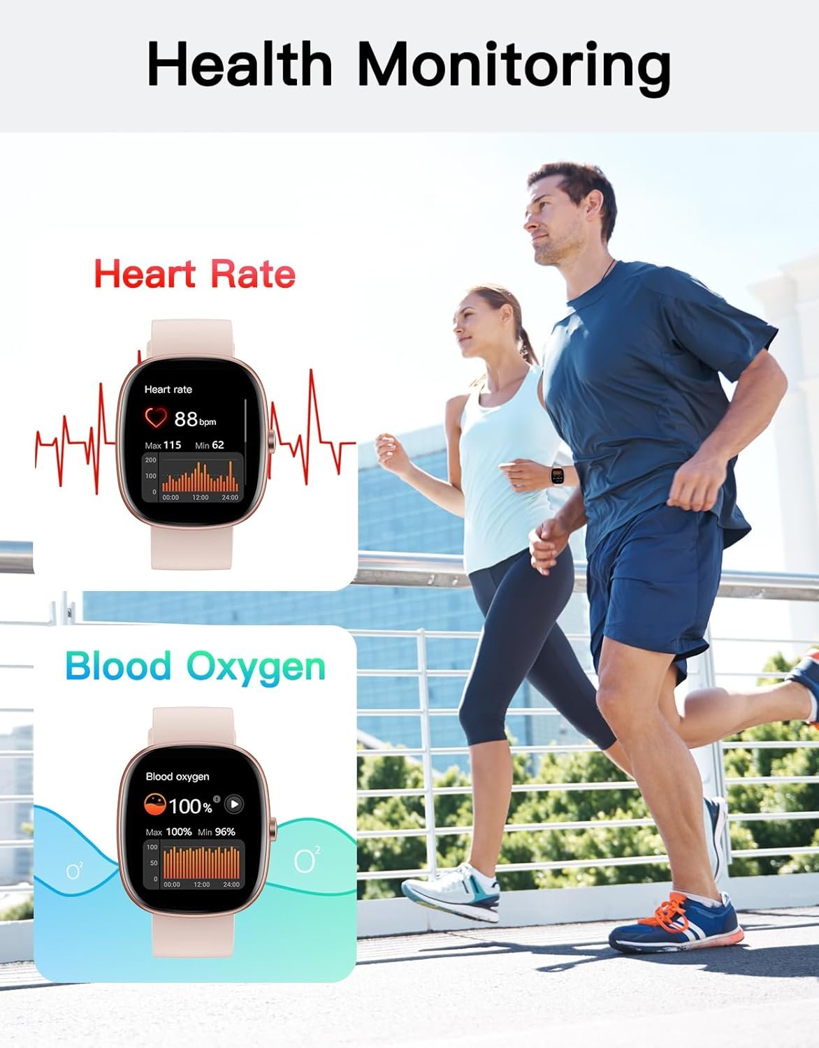 Heart Rate & Blood Oxygen & Sleep Monitoring: This health watch can track your heart rate & Blood Oxygen level in real-time and analyzes sleep patterns to help you improve overall wellness.