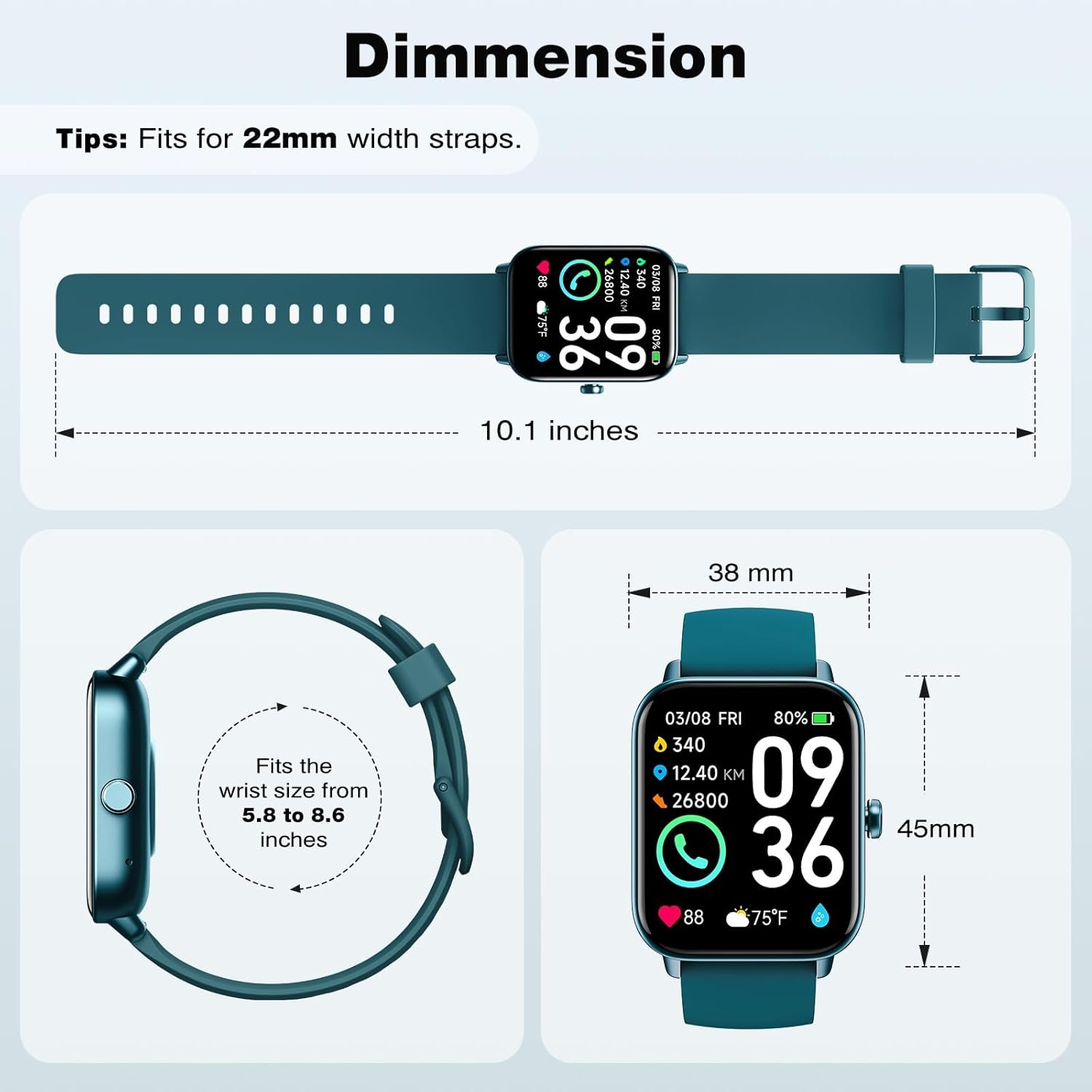 【Practical Watches for Women Men】The smartwatch can be used for fitness monitor, step counter, pedometer, stop watch, timer, women’s health tracking, sedentary alert, meeting reminder, alarm, phone finder, target setting etc. Making it more than just a fitness tracker, greatly enrich your life and bring convenience to your life. And it fits for 6.2-9.2 inch wrist(perimeter), light-weight and comfortable wearing on the wrist, suitable for men women and kids.