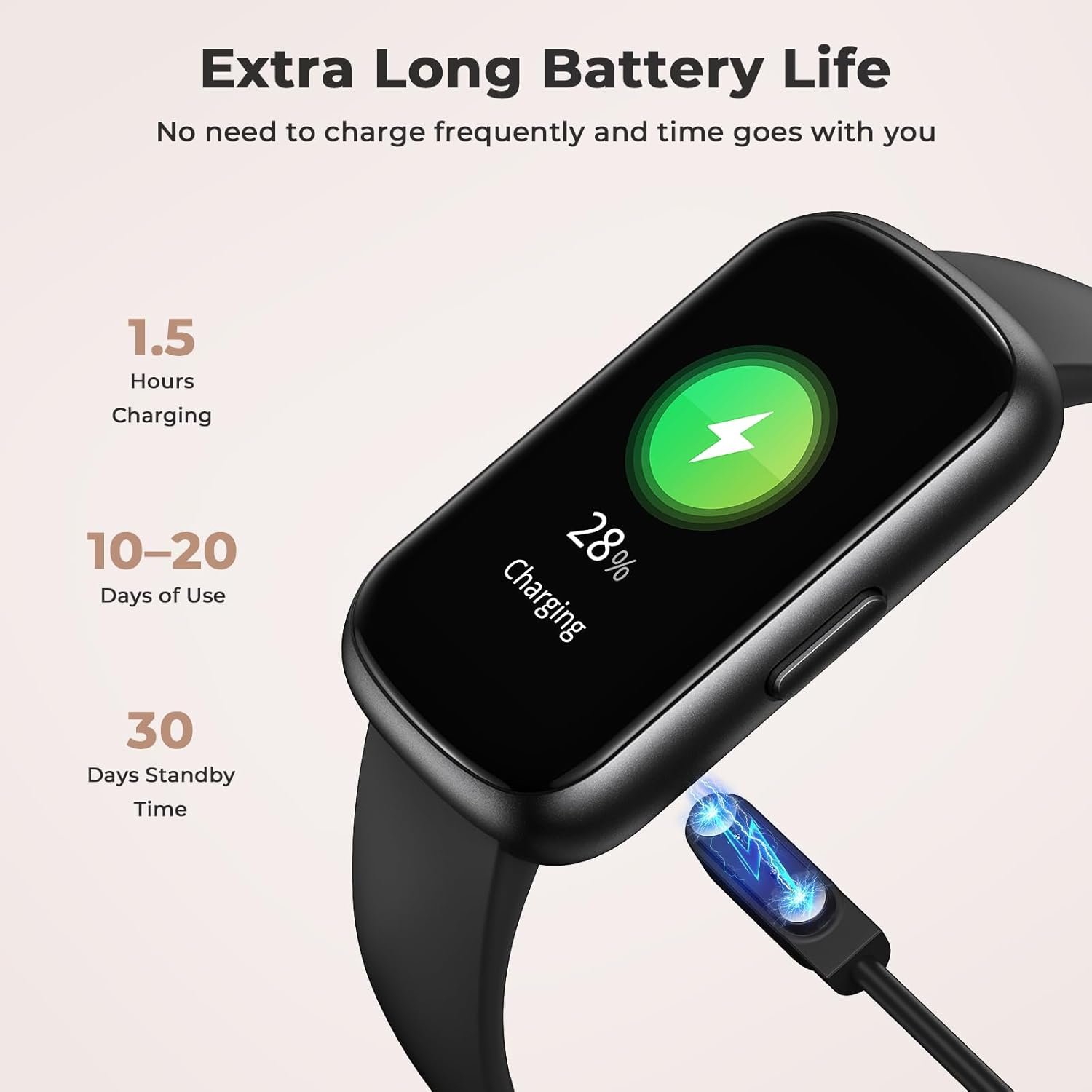 Strong Battery Life: This step counter watch for women men can be fully charged in just 1.5 hours, can last for 7-10 days with all-day wear, and up to 30 days on standby. The watch does not need to be charged frequently, so you can easily manage your time