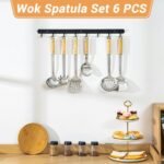 FJNATINH Cooking Utensils – Spatula and ladle Set with Wood Handle, 6 Pieces Wok Utensils Tools – Wok Accessories Cookware Set
