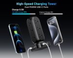 【Space-Saving and Lightweight 】- This charging tower has a compact size (3.4*3.4*6.5 in), only takes up little space on your desk. Small and lightweight design, easy to carry and great for travel. With 4 rubber feet at the bottom, efficiently keeps from sliding and falling down.