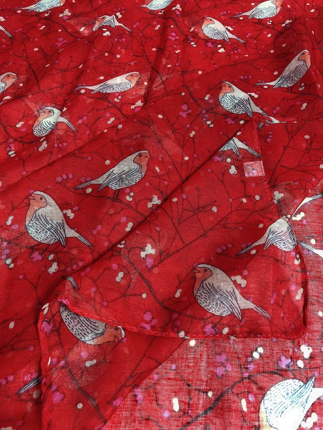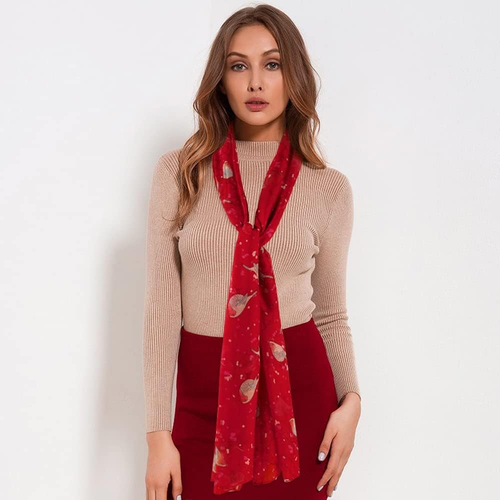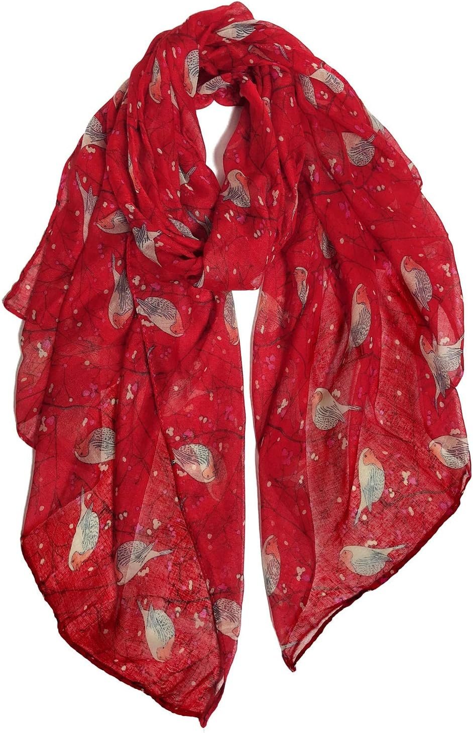 Floral Birds Lovers Scarves for Womens Red Soft Cotton Shawls and Wraps Lightweight Christmas Neckwear Ladies