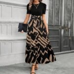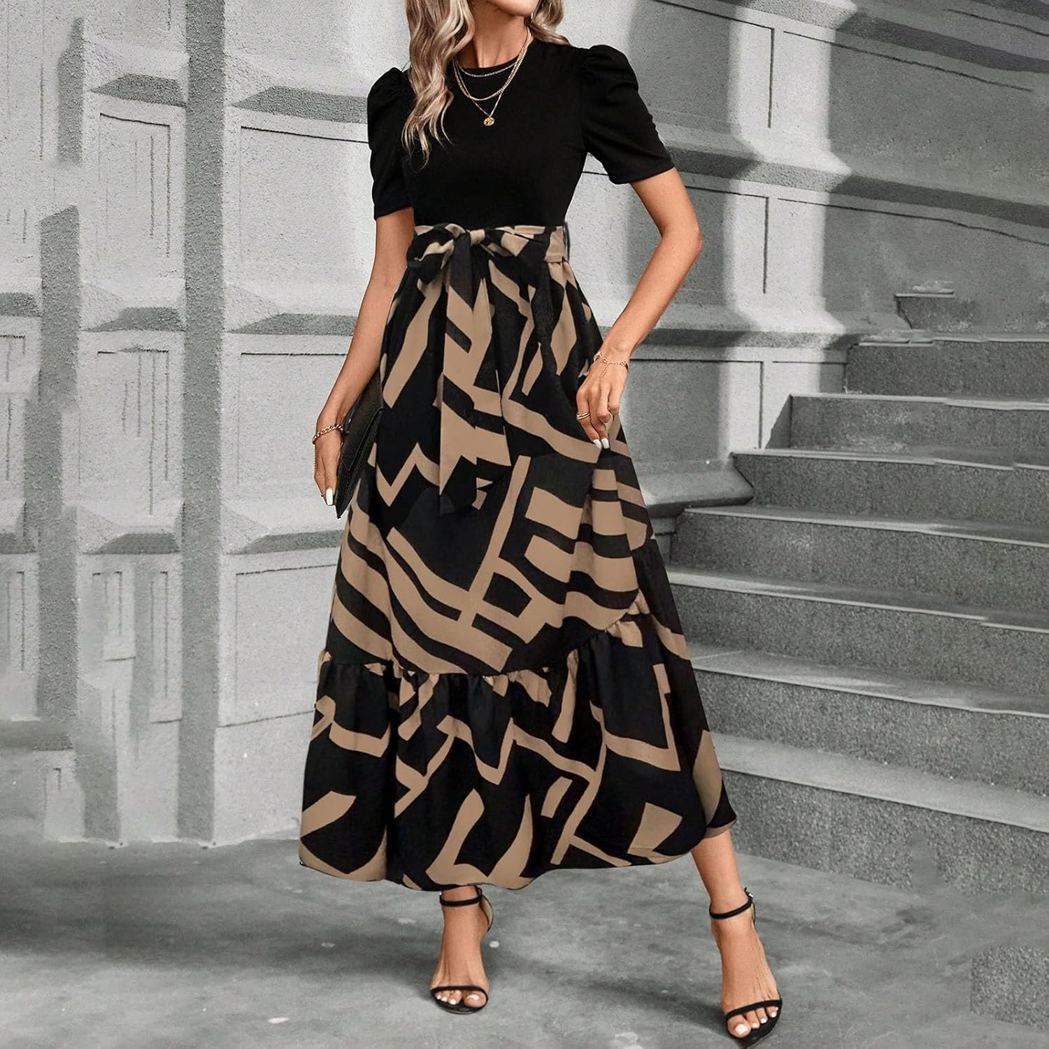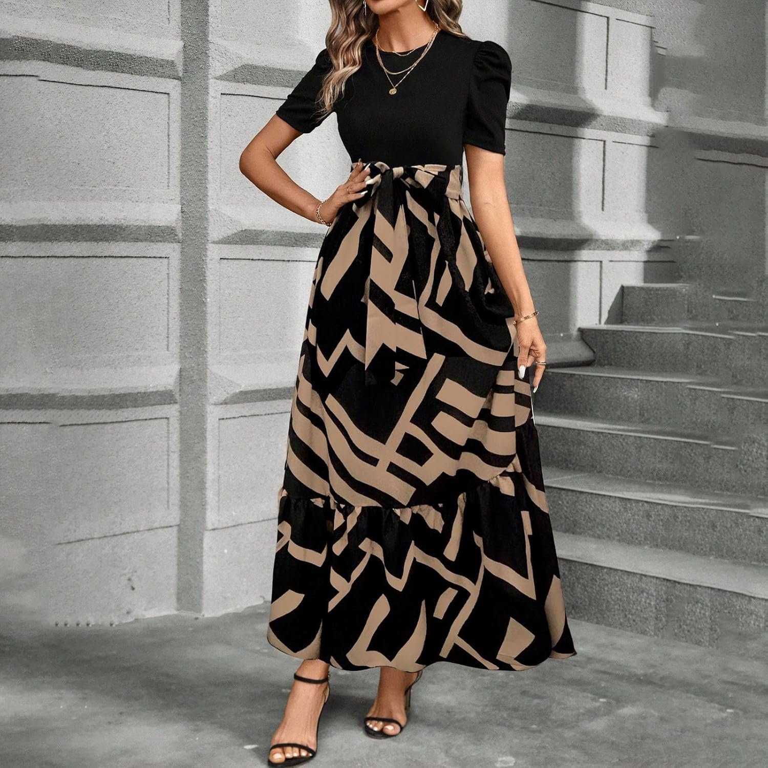 Maxi Dresses for Women 2025 Floral Patchwork Tie Short Sleeve Dress Summer Elegant Flowy Church Wedding Guest Dresses