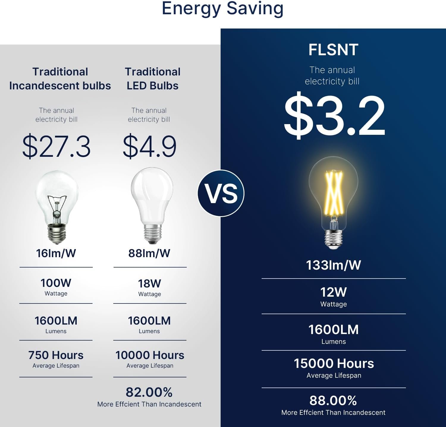 100W Equivalent: Replacing 100 Watts incandescent bulb by 12W LED light bulb, less energy than traditional incandescent lamp, lasting about 15000 hours, saving energy and your cost.Low heat dispersion and high lighting efficacy