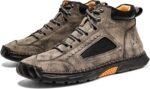 FLYLAND Men’s Casual Leather Fashion Sneakers Ankle Chukka Boots Handmade Lightweight Loafers Mid-top Dress Boots Walking Driving Shoes