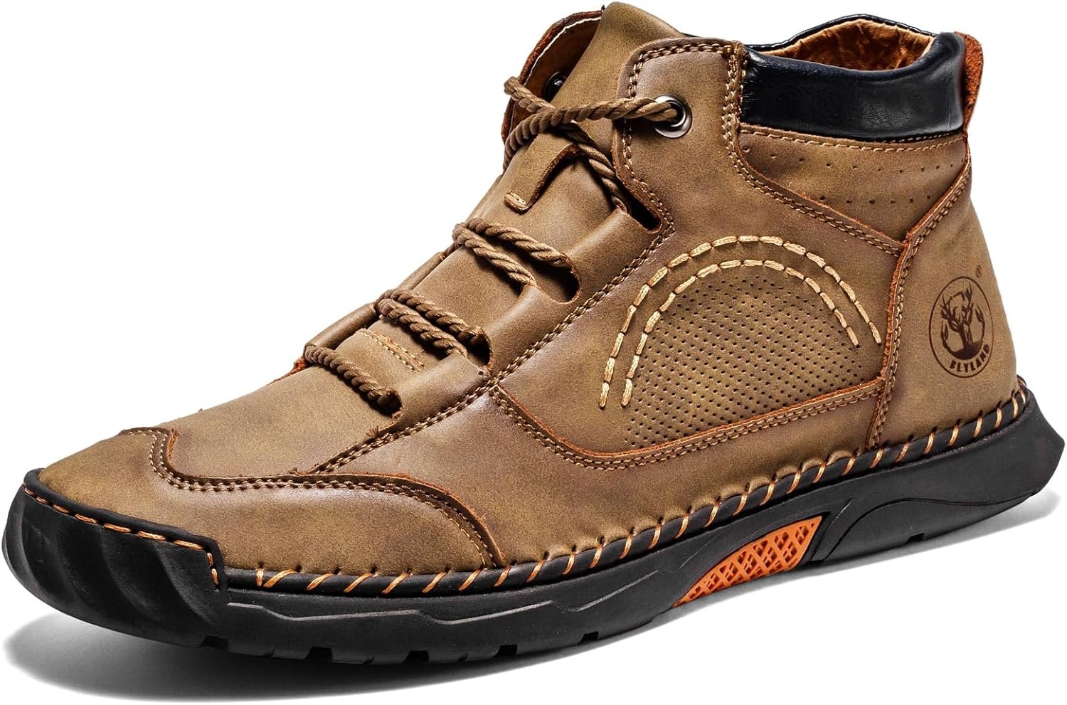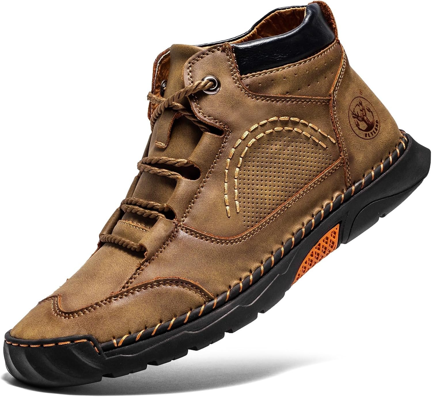 FLYLAND Men’s Casual Leather Shoes Ankle Chukka Boots Fashion Sneakers Handmade Lightweight Loafers Mid Top Dress Boots Walking Driving Shoes
