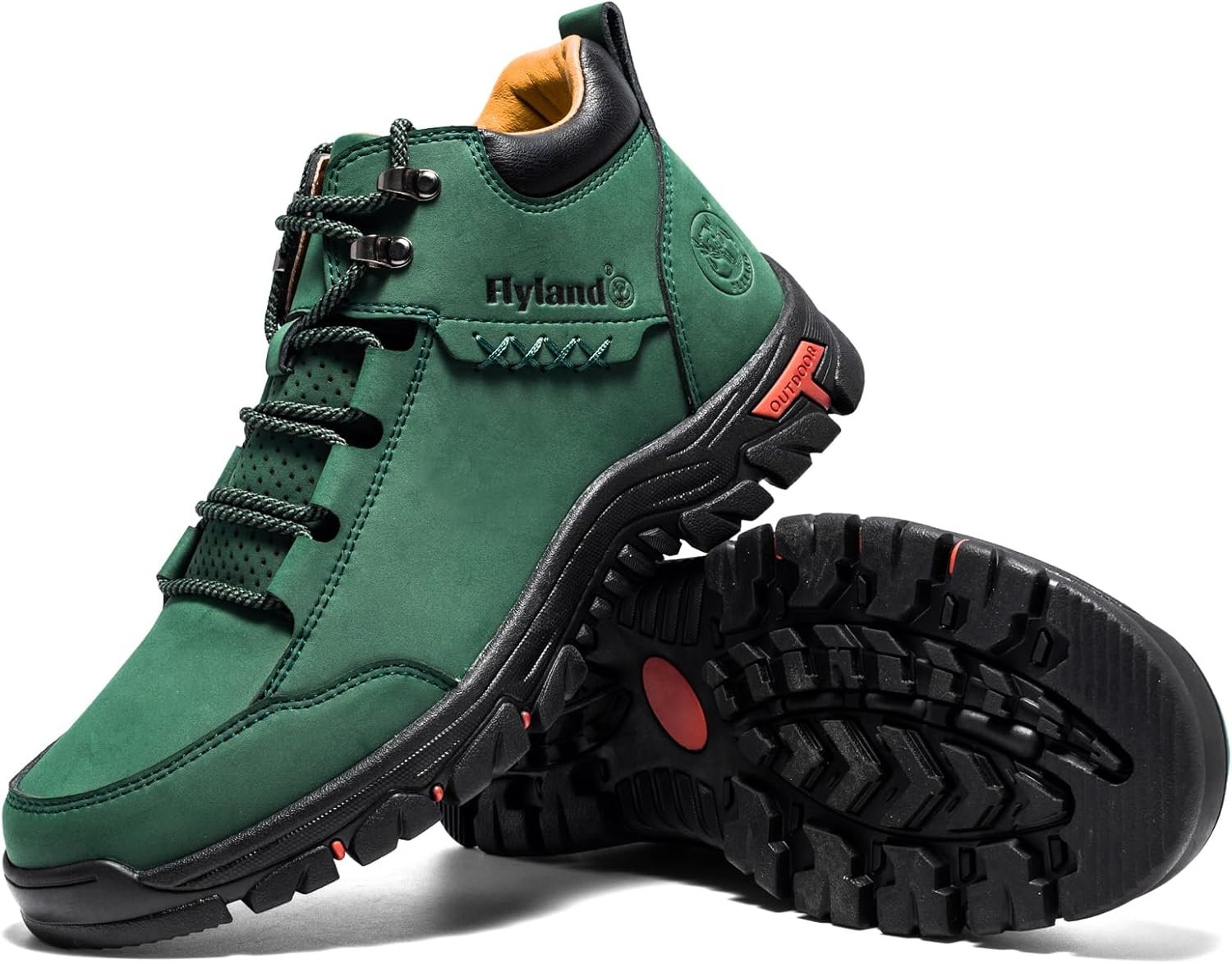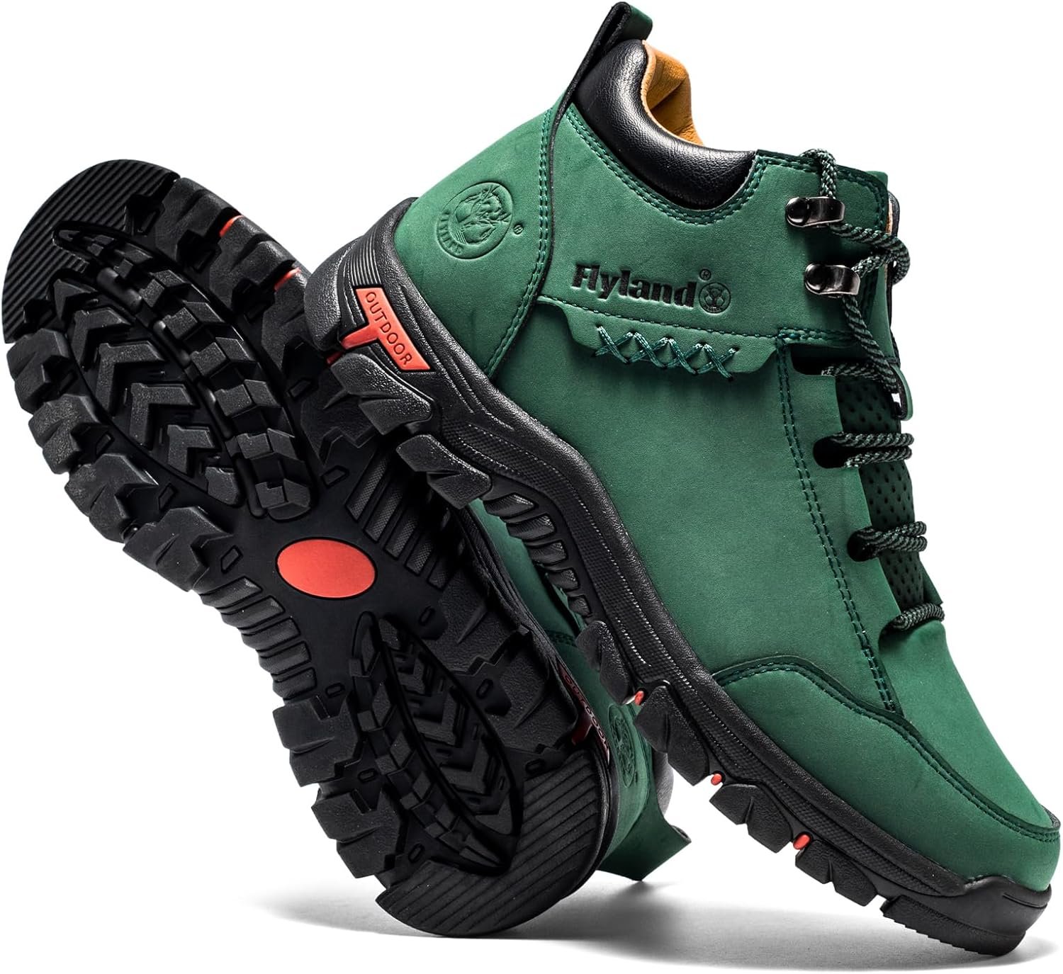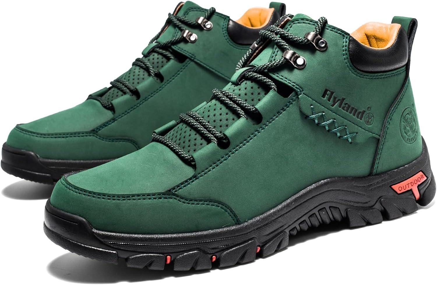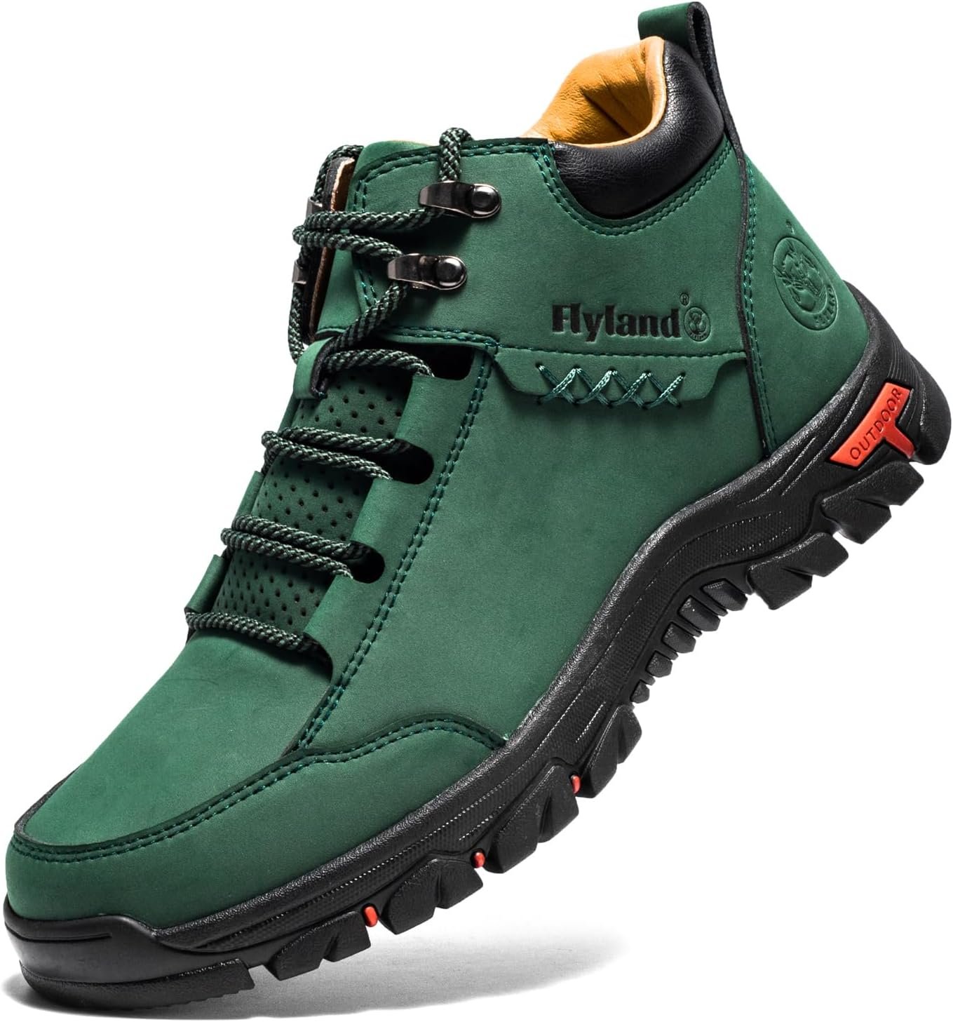 FLYLAND Men’s Casual Leather Shoes Chukka Ankle Boots Handmade Fashion Shoes Non Slip Breathable Comfortable Mid Top for Driving Walking Outdoor