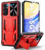 FNTCASE for Samsung Galaxy A15-5G Case: Protective Shockproof Rugged Military Grade Drop Protection A15 Cell Phone Mobile Cover with Kickstand | TPU Matte Textured Tough Hybrid Hard Cases – Red