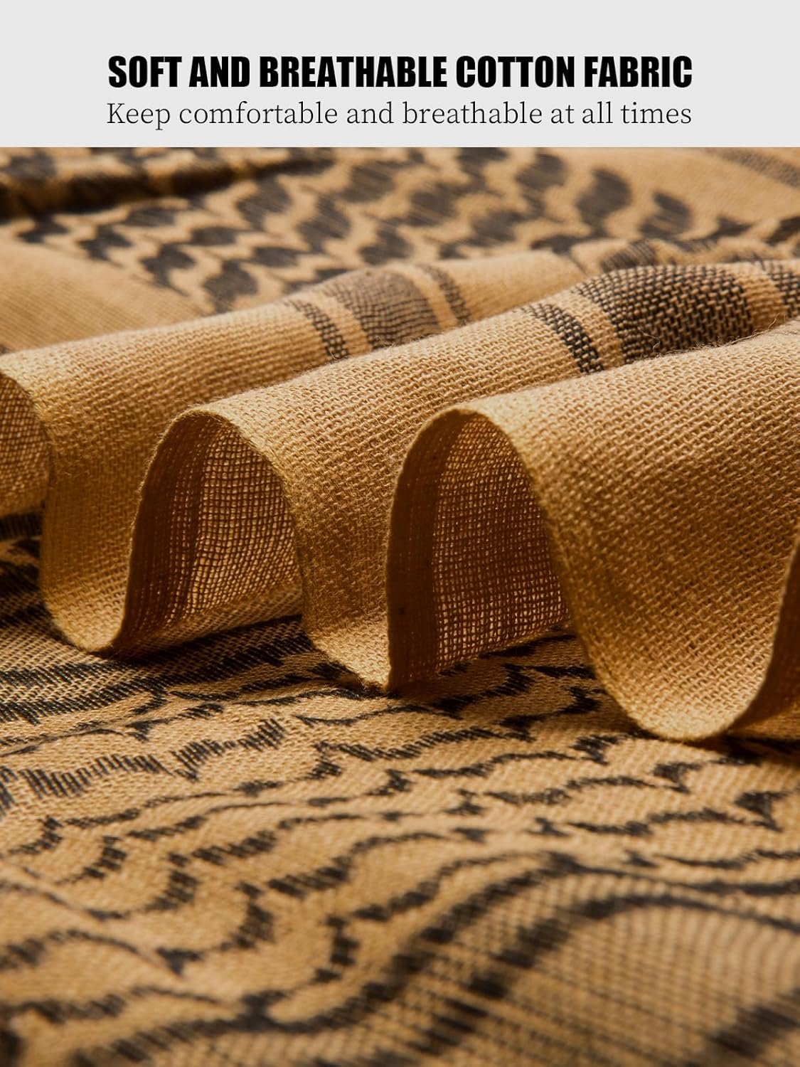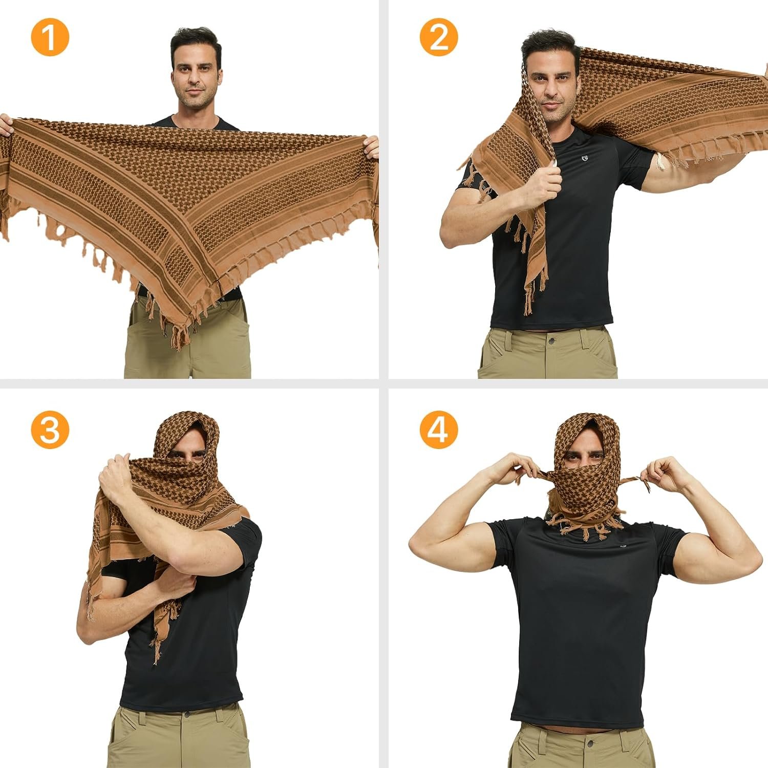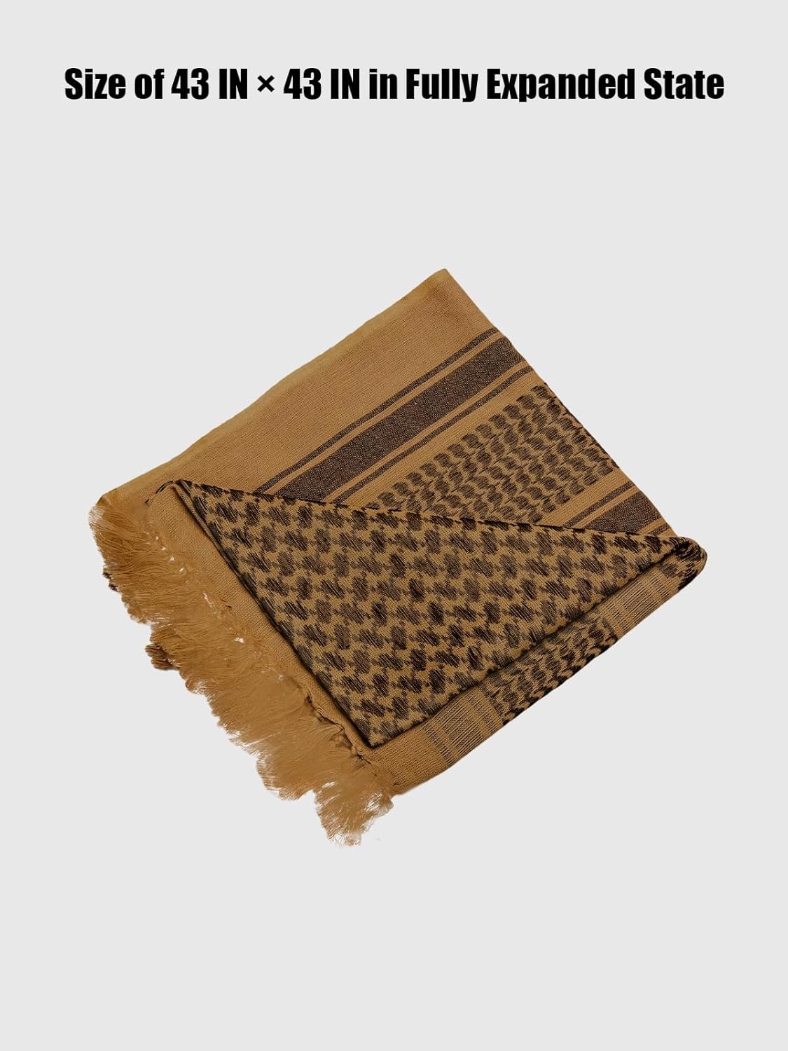 The tactical shemagh is made of high quality woven material, not print with excellent performance that no shrink, no fading, no deformationPerfect for hunting, shooting, hiking, paintball, airsoft survivalists or wrapping as fashion accessoryEasy folding, lightweight and portable.