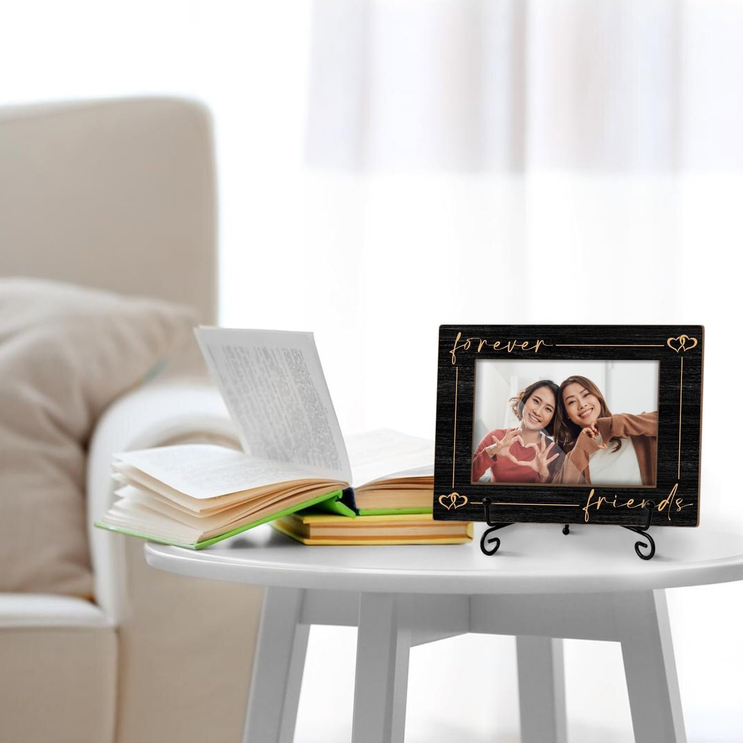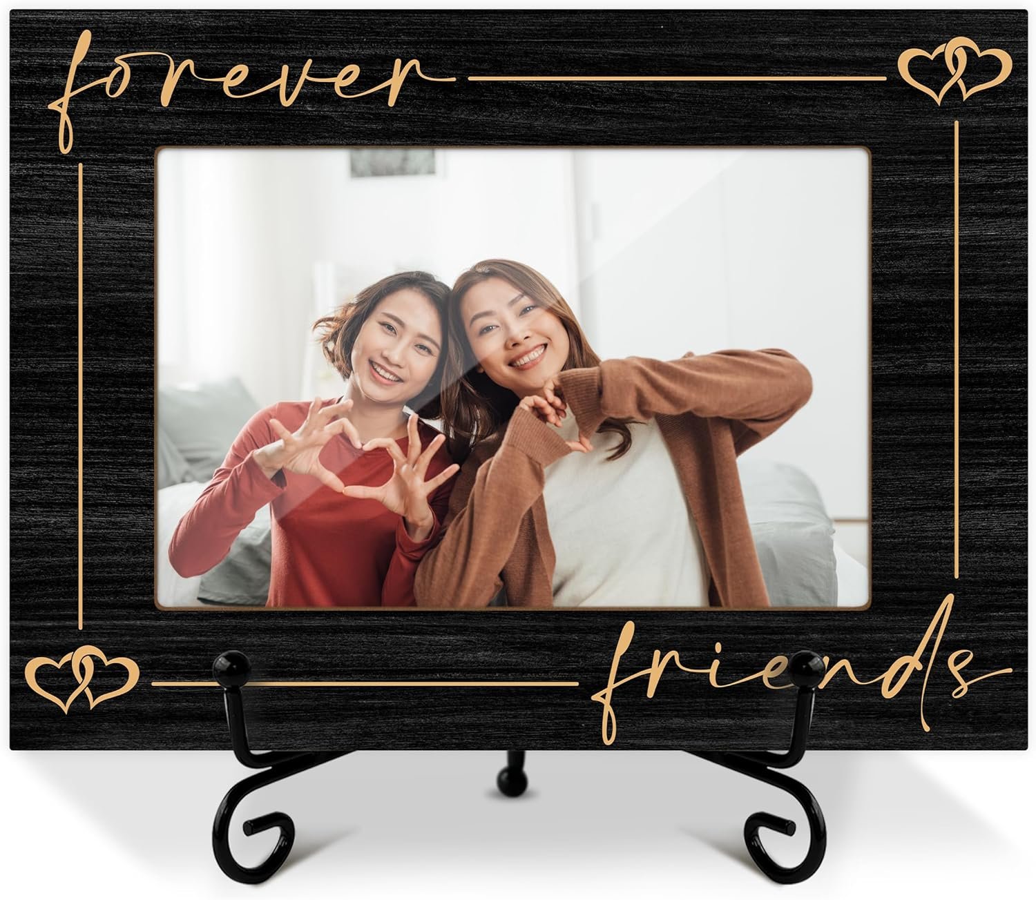 Friends Picture Frame, Friendship Graduation Gifts for Bestie, Wooden Photo Frame With Iron Stand, Tabletop Decor -18