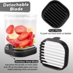 Removable Blades: This fruit cutter slicer equipped with detachable slicing blade, make your cleaning more convenient, just press the buckle on both sides and lift up to rinse away any food residue. Dishwasher safe.
