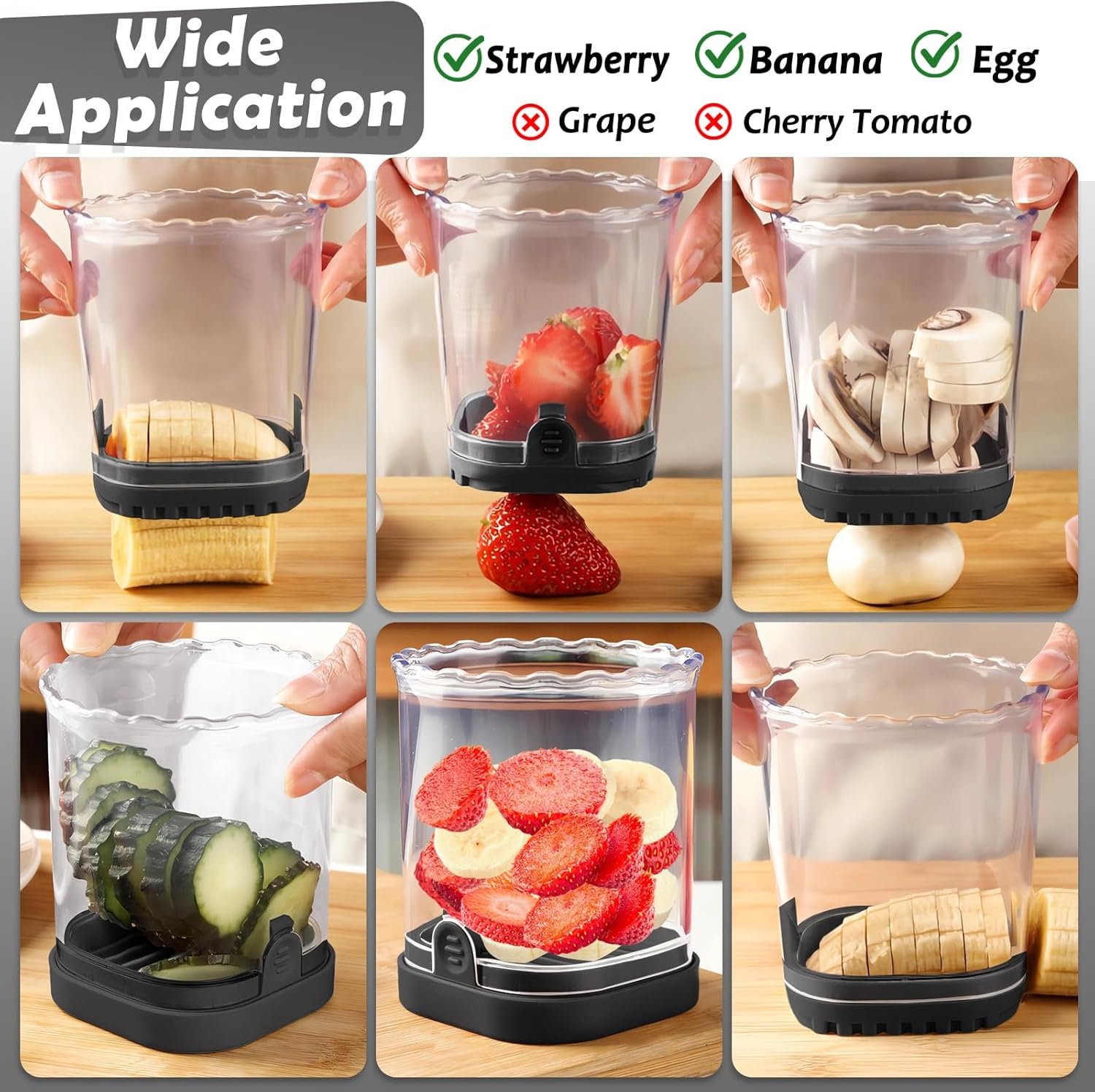 Suitable For Various Fruit: The cup cutter for fruit is designed for slicing a variety of fruit, quickly slicing Strawberry / Grape / Banana / Kiwi / Mushroom / Boiled Egg into neat slices. Nicely and neatly 6mm slice for a fruit salad, sandwich, or fruit cake. Save your time and make slicing fruits a breeze.
