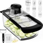 Compact and Practical – Our clear vegetable mandoline slicer can be fully disassembled with ease and the included blade box means that worrying about storage and organization is a thing of the past. Plus, this kitchen gadget is dishwasher safe and comes with a specialized cleaning tool, making cleaning a breeze!