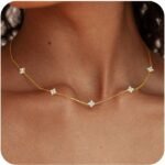 FUNEIA Dainty Silver Gold Necklaces for Women Trendy Non Tarnish 14K Gold Plated Cubic Zirconia Necklace Layered Cute Butterfly Heart Station Choker Necklace Stack for Wedding Prom Brides Jewelry