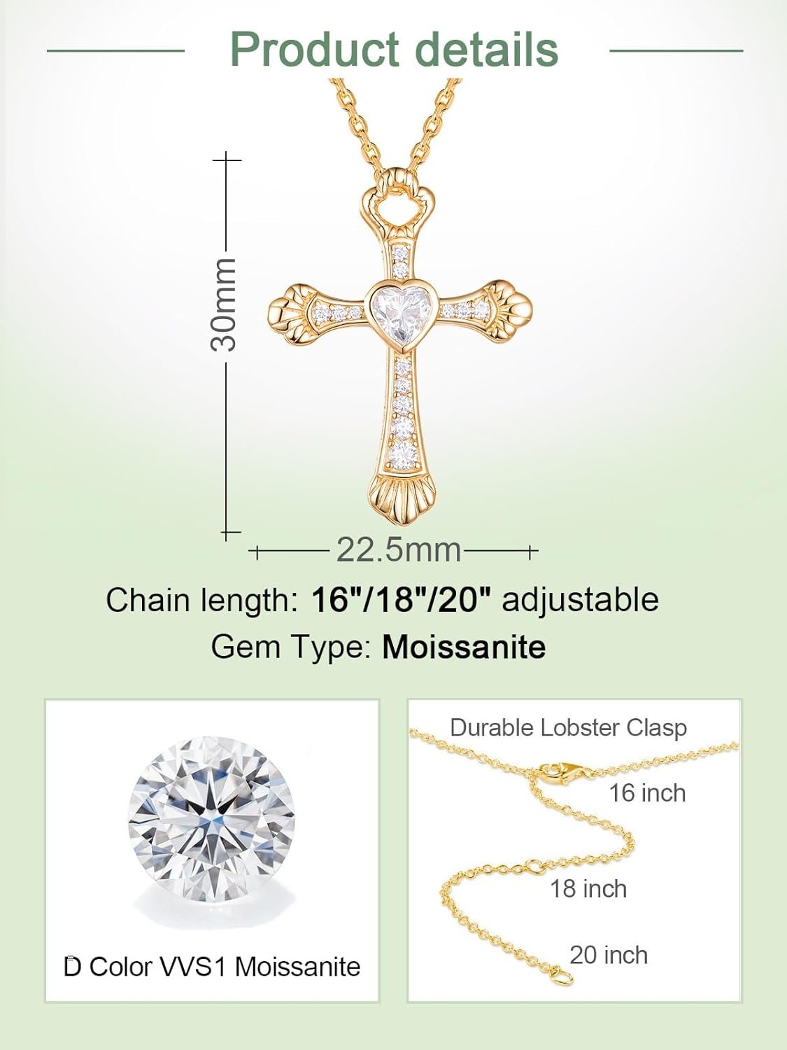 FWM Moissanite and Created Genuine Sapphire/Ruby/Emerald Cross Necklace for Women Men, Solid 925 Sterling Silver, 16”/18”/20” Adjustable, Christian Anniversary Birthday Jewelry