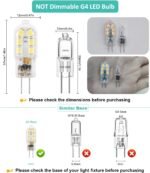 Our g4 led bulbs are a little bigger than g4 halogen bulbs, please check the size before purchasing. Not dimmable, AC/DC 12V g4 LED bulb, 360° beam angle, warm white 3000K emits cozy comfortable light, best for accent lighting