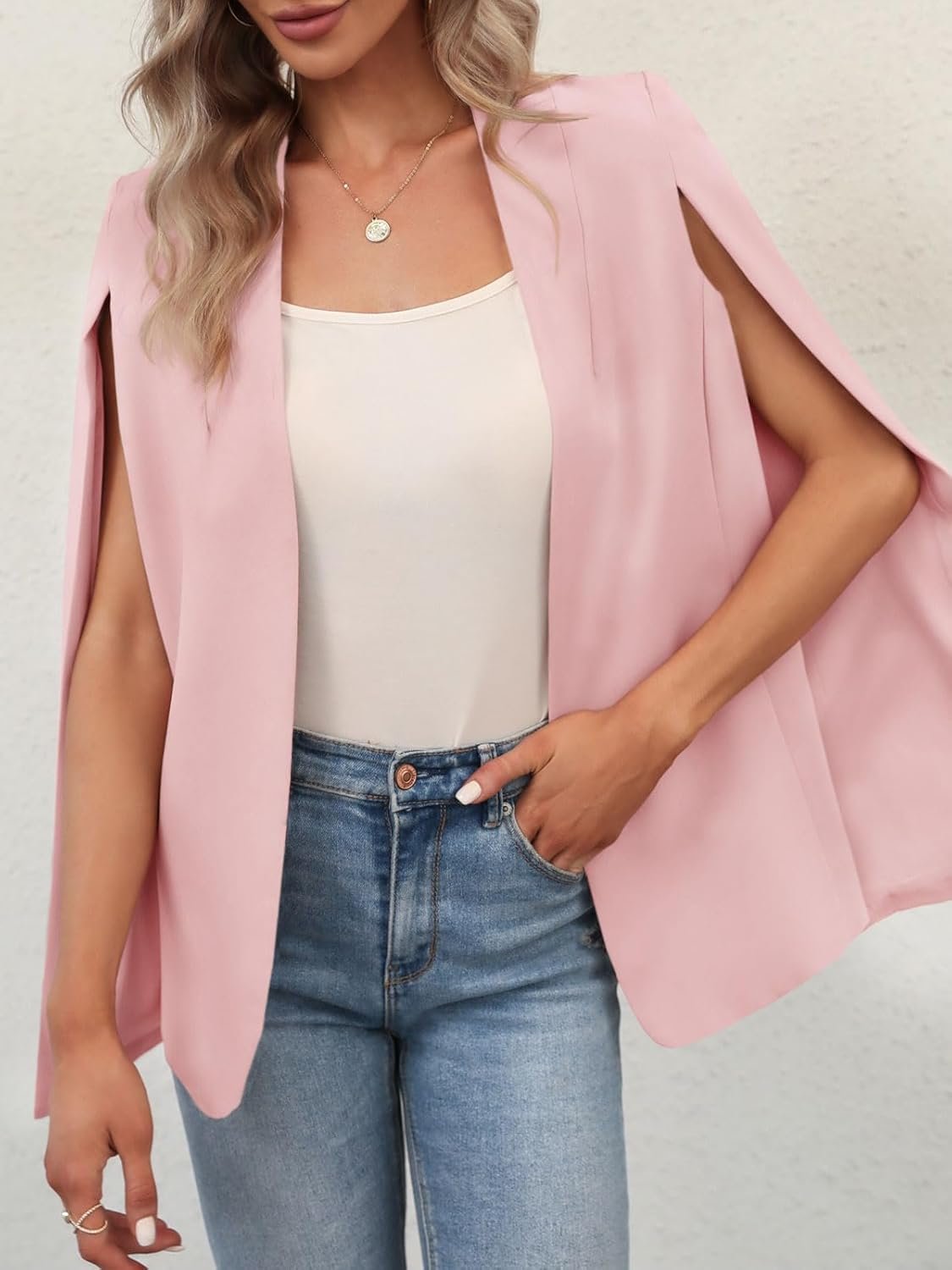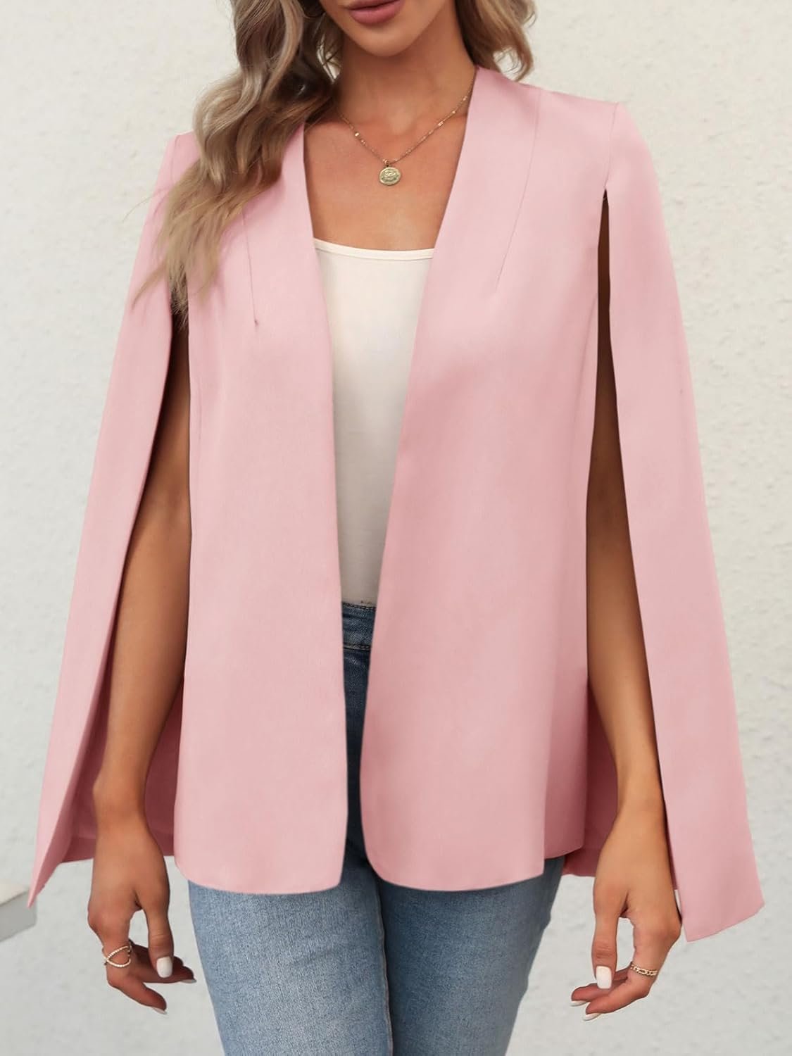 Womens Cape Blazer Split Sleeve Open Front Business Casual Jacket