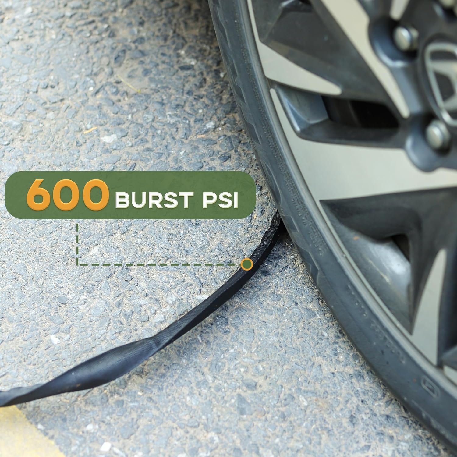 Non-Expanding: Does not expand or retract, guaranteeing an uninterrupted and high water flow Rate, high flow equal to a conventional 5/8″ hose