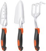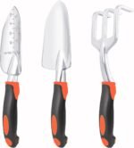 Garden Tools Set, 3 Pack Heavy Duty Gardening Tools Set Include Garden Shovel, Transplant Trowel and Hand Rake with Ergonomic Handle, Aluminum Alloy Lawn for Planting, Orange