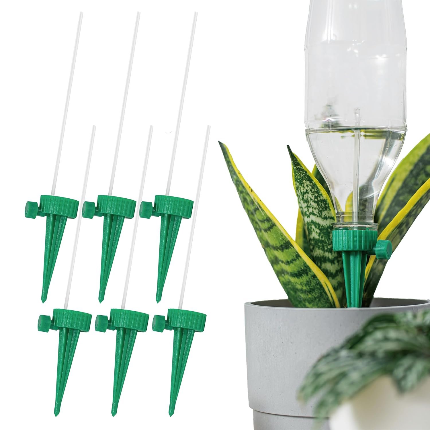 【Versatile and Convenient】Suitable for a wide range of indoor and outdoor plants, these self-watering spikes provide peace of mind, ensuring your plants stay hydrated, even when you’re away. The 600ml bottle can provide slow watering for 1-7 days, while the 1.5liter beverage bottle can last from 7-15 days, depending on the flow speed