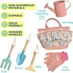 Gardening Set, Tool Kit, for Kids, STEM, Includes Tote Bag, Spade, Watering Can, Rake, Fork, Trowel and Gloves (Petal)