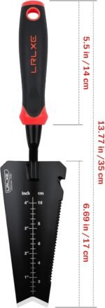 Gardening Shovel Tool, LRLXE Heavy Duty Stainless Steel Garden Transplant Shovel, Root Cutter, All-Purpose Small Hand Shovel with Serrated Edge for Digging and Transplanting(Red)