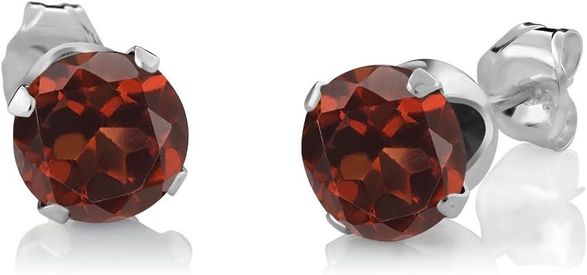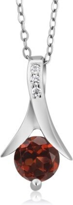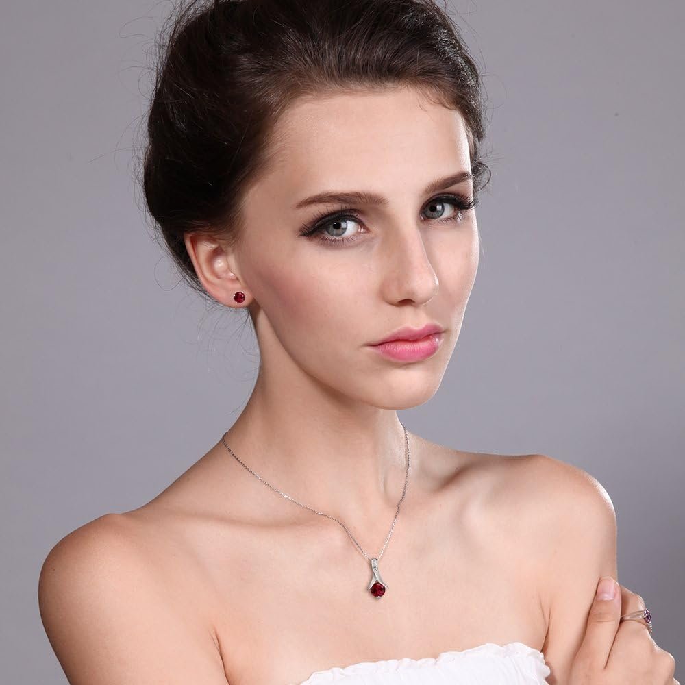 Gem Stone King 925 Sterling Silver Red Garnet Earring and Pendant Set For Women (2.25 Cttw, Gemstone Birthstone, 6MM Each Garnet, With 18 Inch Silver Chain)