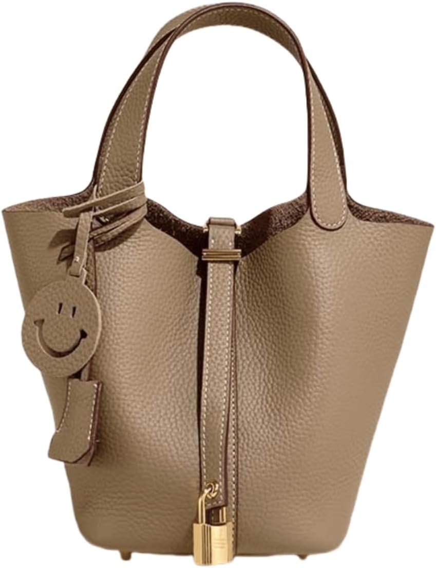Genuine Leather-Handbags,Bucket-Vegetable Basket-Elegant & Fashionable- with Lock-Portable,fashion-Female Bag