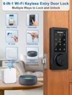 [6-in-1 Keyless Entry Smart Lock] Leave the hassle keys behind. This WiFi smart lock with gateway supports entry including passcode, eKeys, app control, voice control, and as well as RFID cards and physical keys entry. You can generate up to 200 passcodes with different validity periods and send them to your families, friends, dog walker, or housekeeper. The Smart Deadbolt can help better protect your house and property and is also great for apartment, and hotel management.