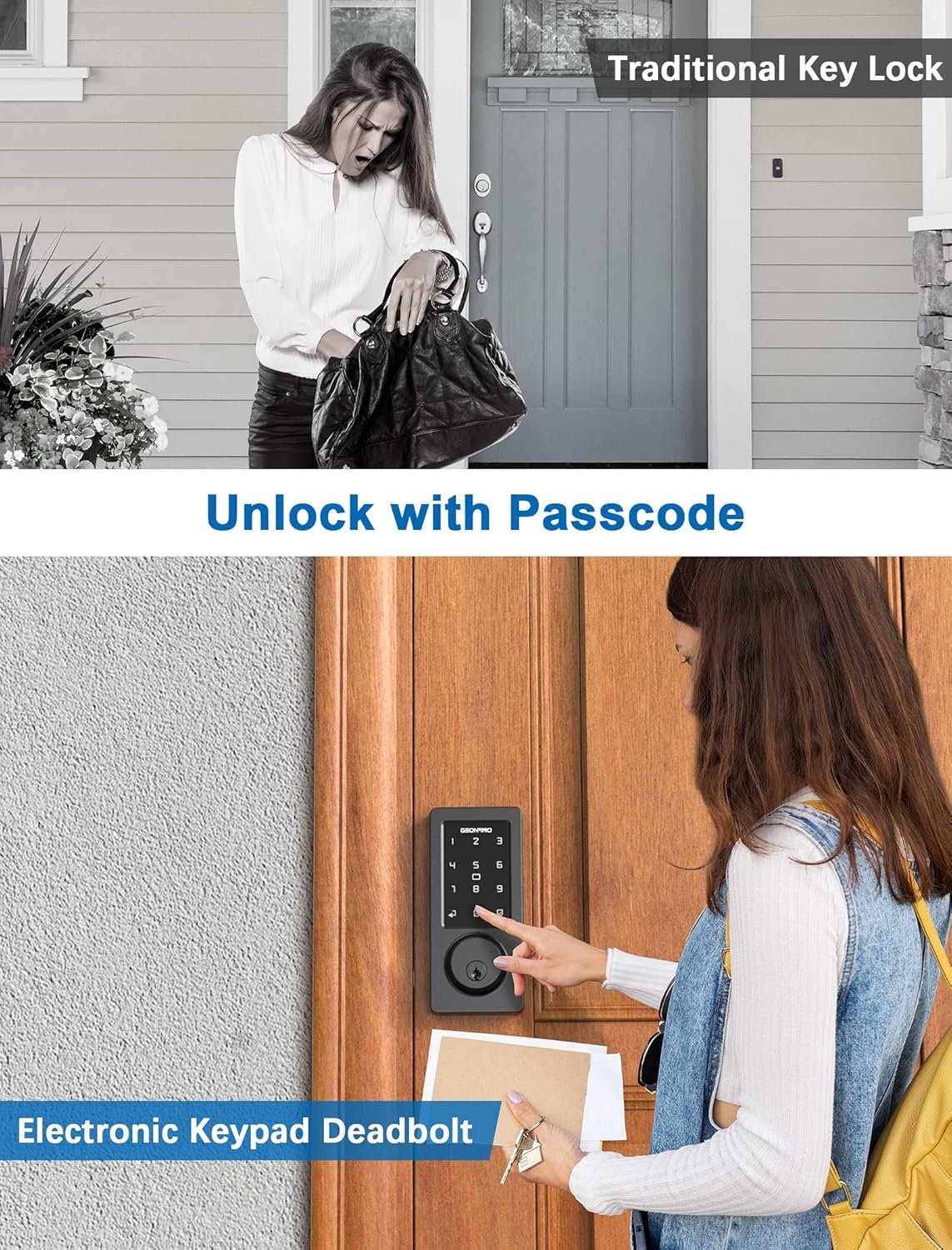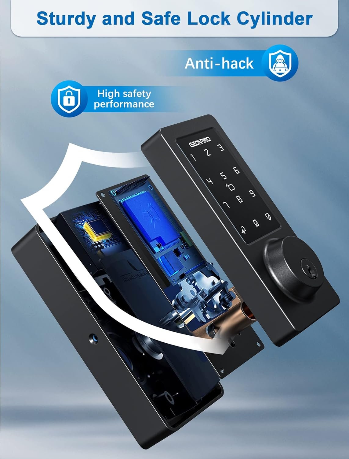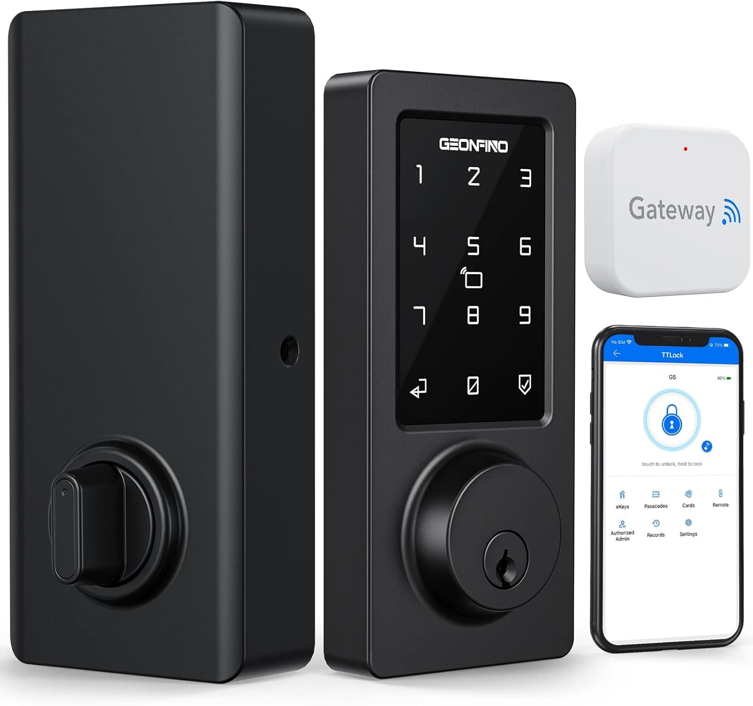 GEONFINO WiFi & Bluetooth Smart Lock with Keyless Entry, Touchscreen Keypad, Auto Lock, Alexa Voice Control, Black