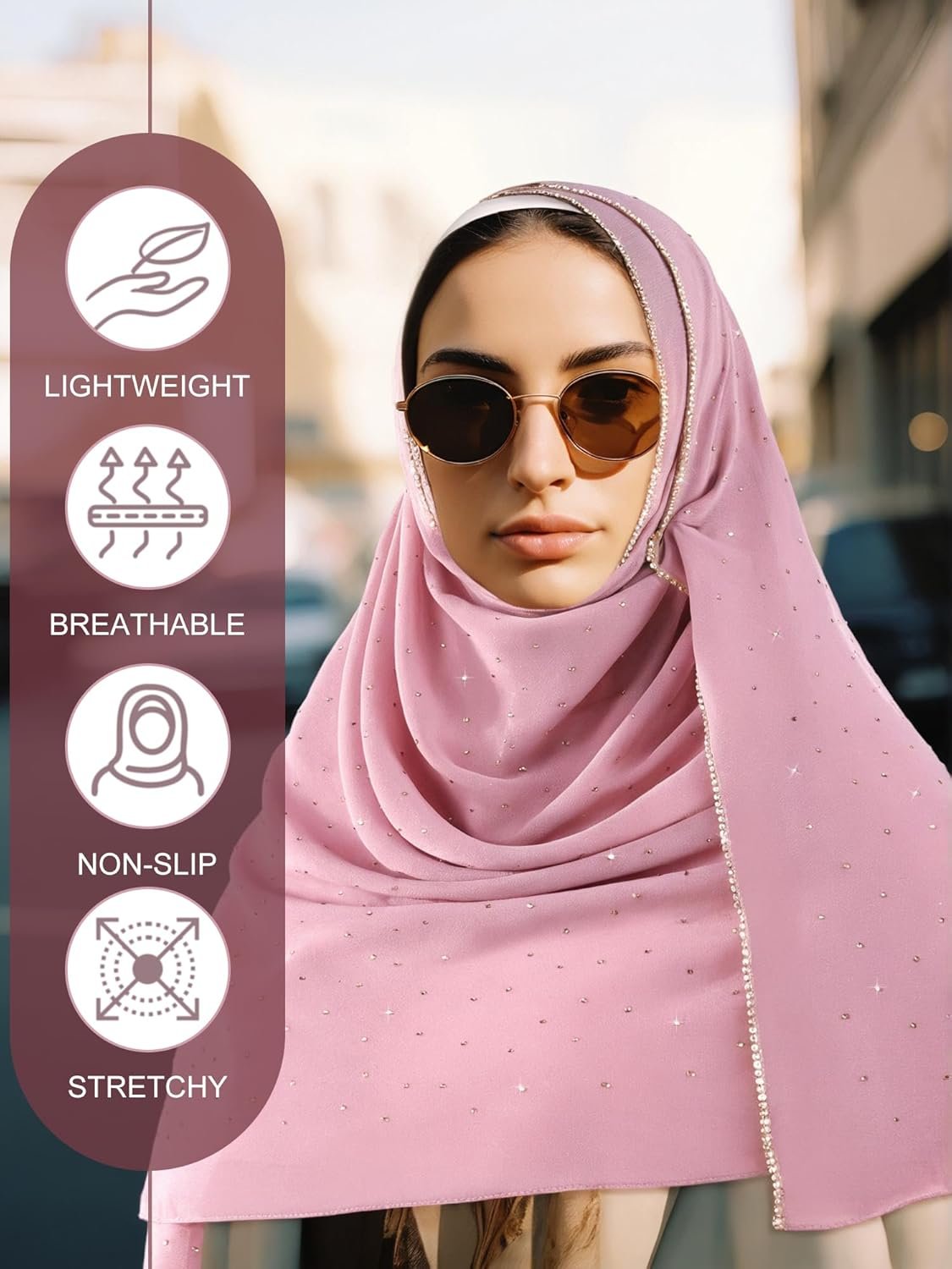Hijab Scarf for Women Soft Chiffon Rhinestone Long Scarf Shawl Fashion Muslim Hijab Head Wrap Scarves