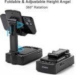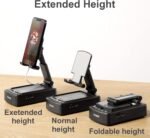 Foldable Adjustable Phone Stand – The stand can be easily folded like a book and carry everywhere. The Height of phone holder can be simply be extended 1.9in more basing on the origin height. The angle can be adjusted from 0° to 235° by hand. Additionally, its half part supports 360°ROTATION. Phone stand with Bluetooth Speakers can freely.