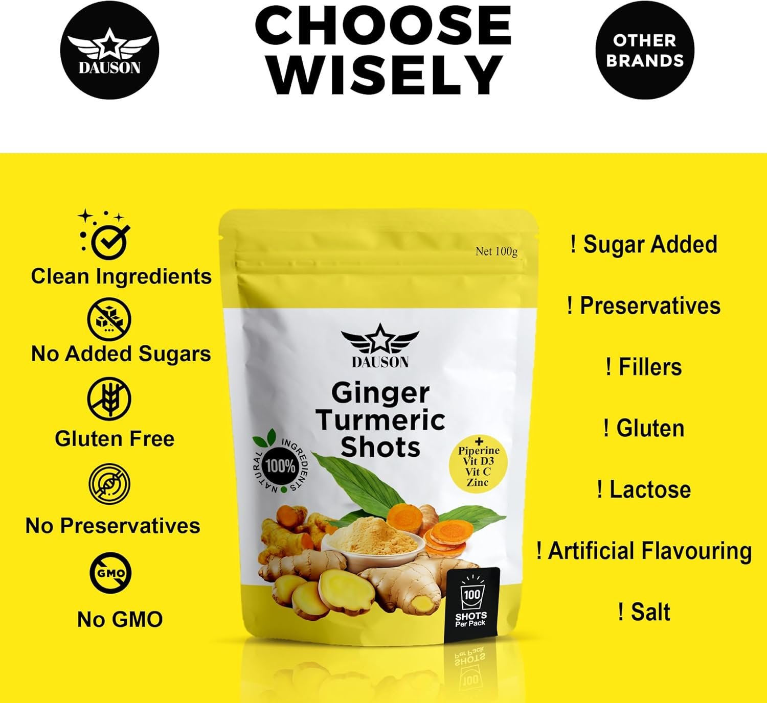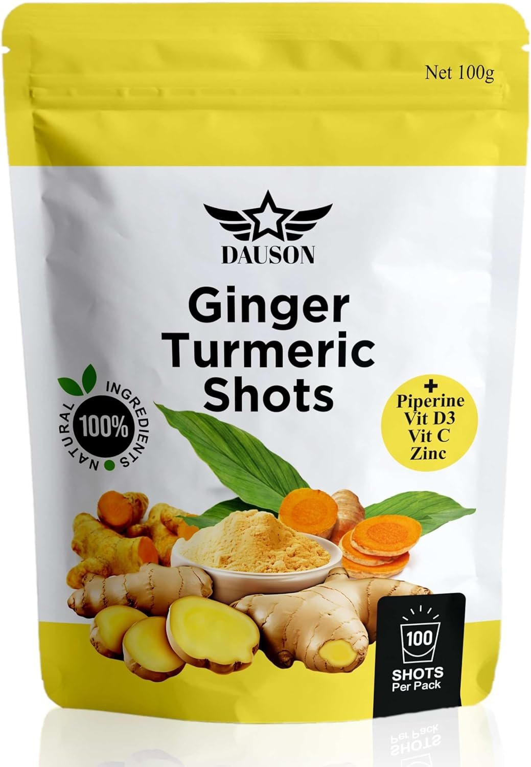🌿A HEALTHY DAILY RITUAL: With activated black pepper for enhanced absorption, each pack offers 100 shots of revitalizing goodness. Experience the real kick of ginger with over 65% ginger per shot, surpassing typical liquid concentrates. Make it your healthy habit and embrace the benefits of this powerful turmeric ginger mix.