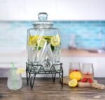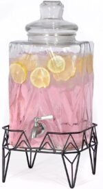 Glacial Ice Design Glass Beverage Dispenser with SS Spigot and Stand – 2.5 Gal
