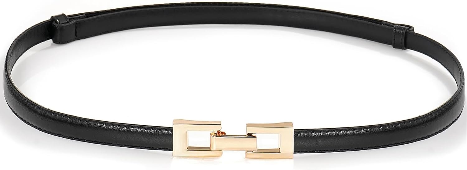 Glamorstar Skinny Belts for Women Thin PU Leather Waist Belt with Gold Buckle for Dresses