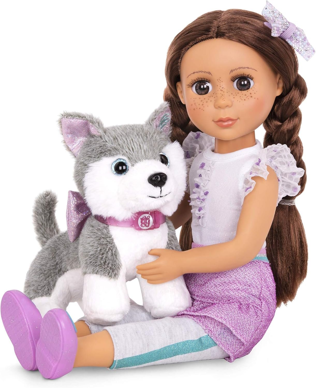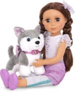 Glitter Girls – Alaska – Plush Toy Dog – Puppy Pet Accessory for 14-inch Dolls – Toys, Clothes, and Accessories for Girls 3 and up, Grey, White