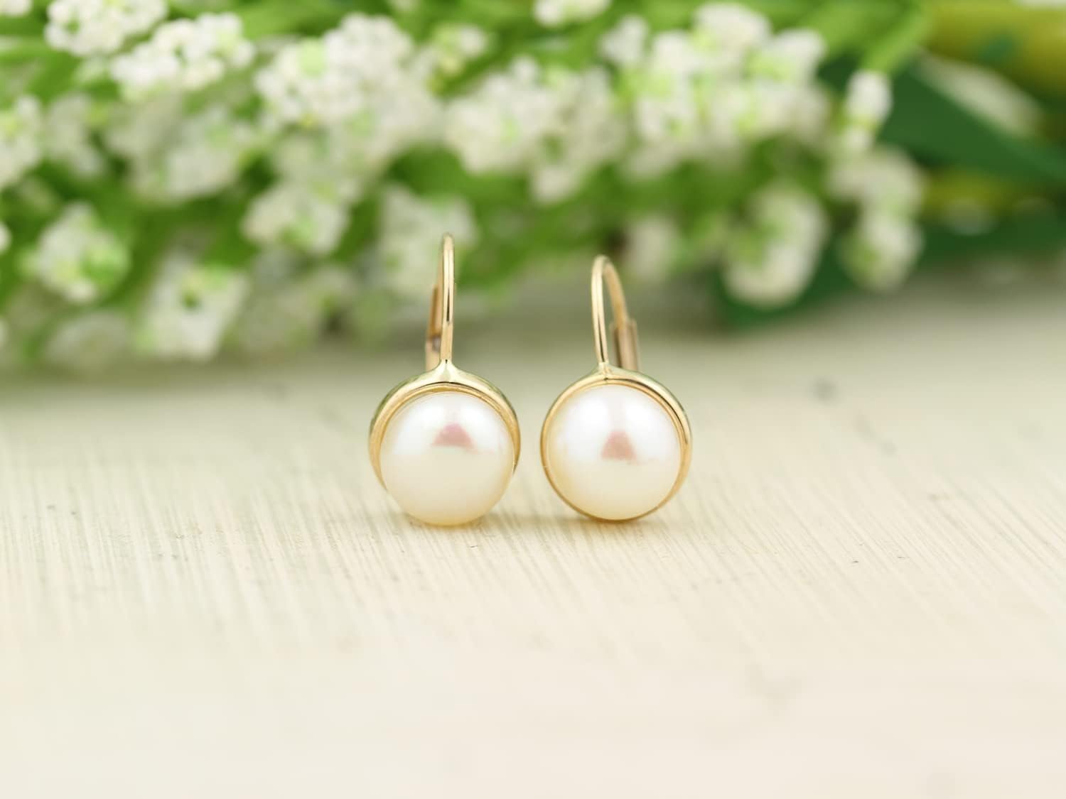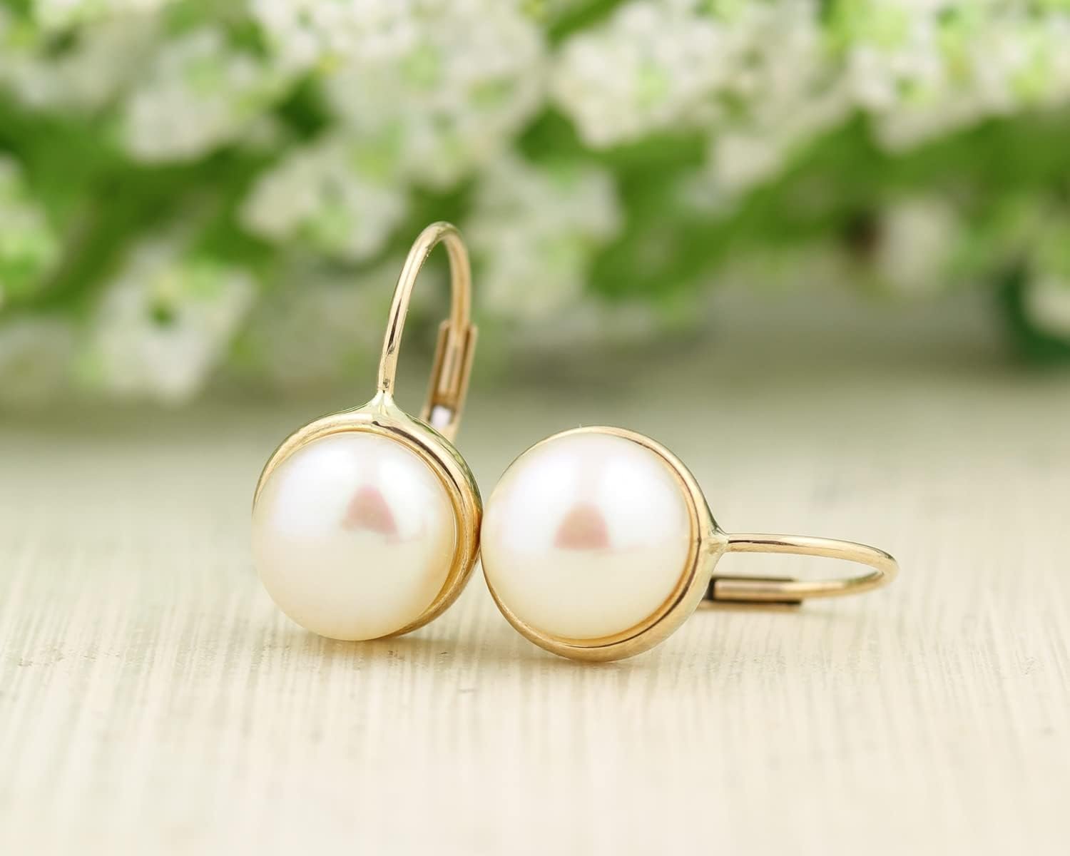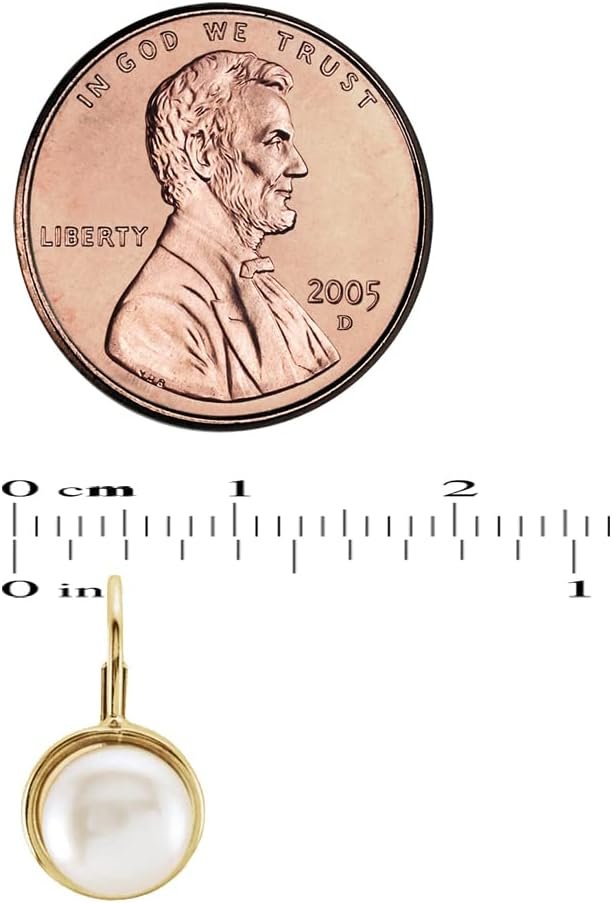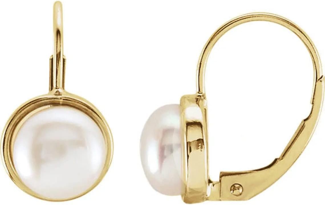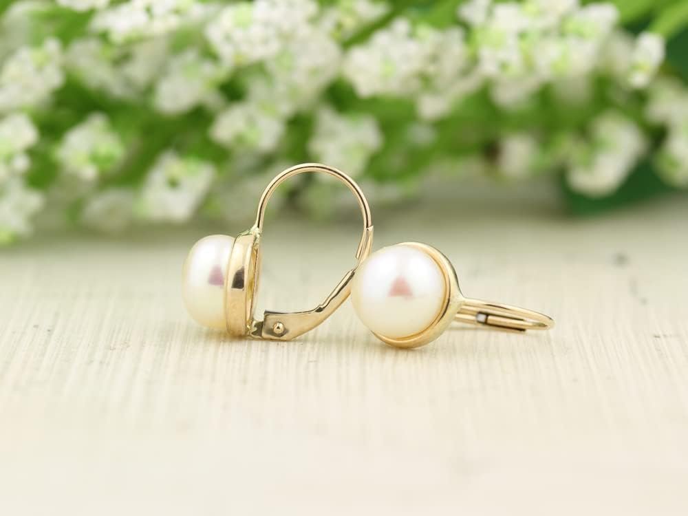 GNGJewel Solid 14K Yellow Gold Freshwater Cultured Pearl lever Back Earrings