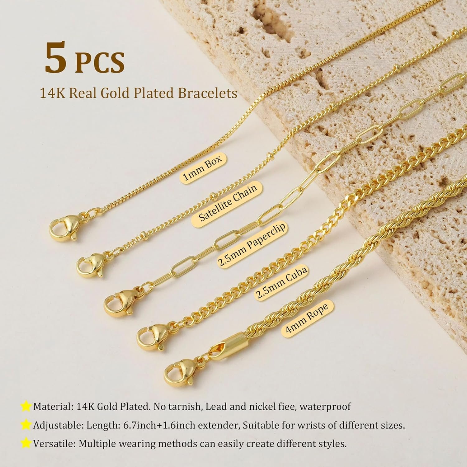 Made with premium 14K gold plating, these bracelets offer a radiant, they are nickel-free, lead-free, no tarnish and hypoallergenic, making them suitable for even the most sensitive skin.
