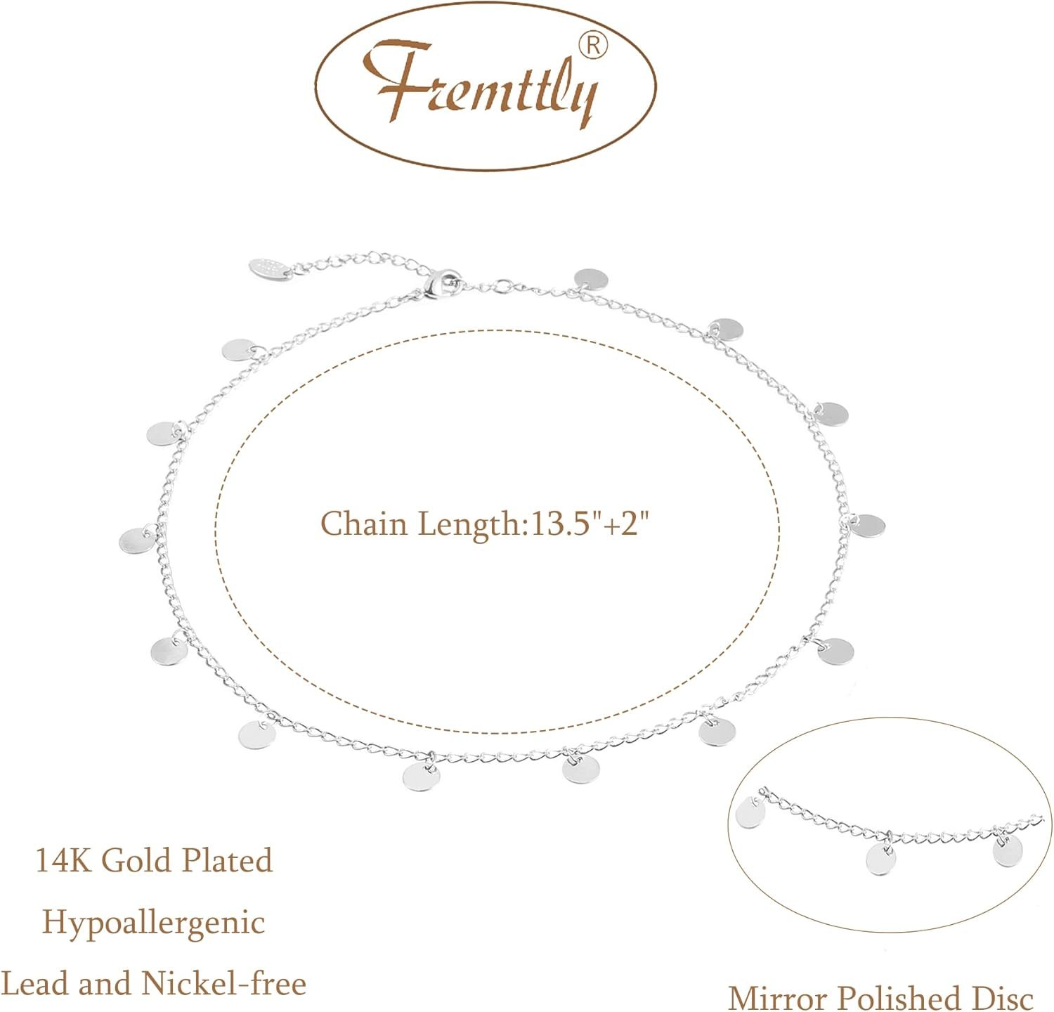 Gold Choker Necklaces 14K Gold Plated/Silver Disc Choker Necklaces Dangling Star Heart Pendant Necklaces Summer Beach Boho Necklaces Aesthetic Necklace Gift for Women