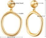 Gold Earrings for Women 14k Gold Plated Threaded Pearl Drop Earrings Hypoallergenic Dainty Baroque Pearl Geometric Rectangle Waterdrop Dangle Statement Earrings for Women Trendy