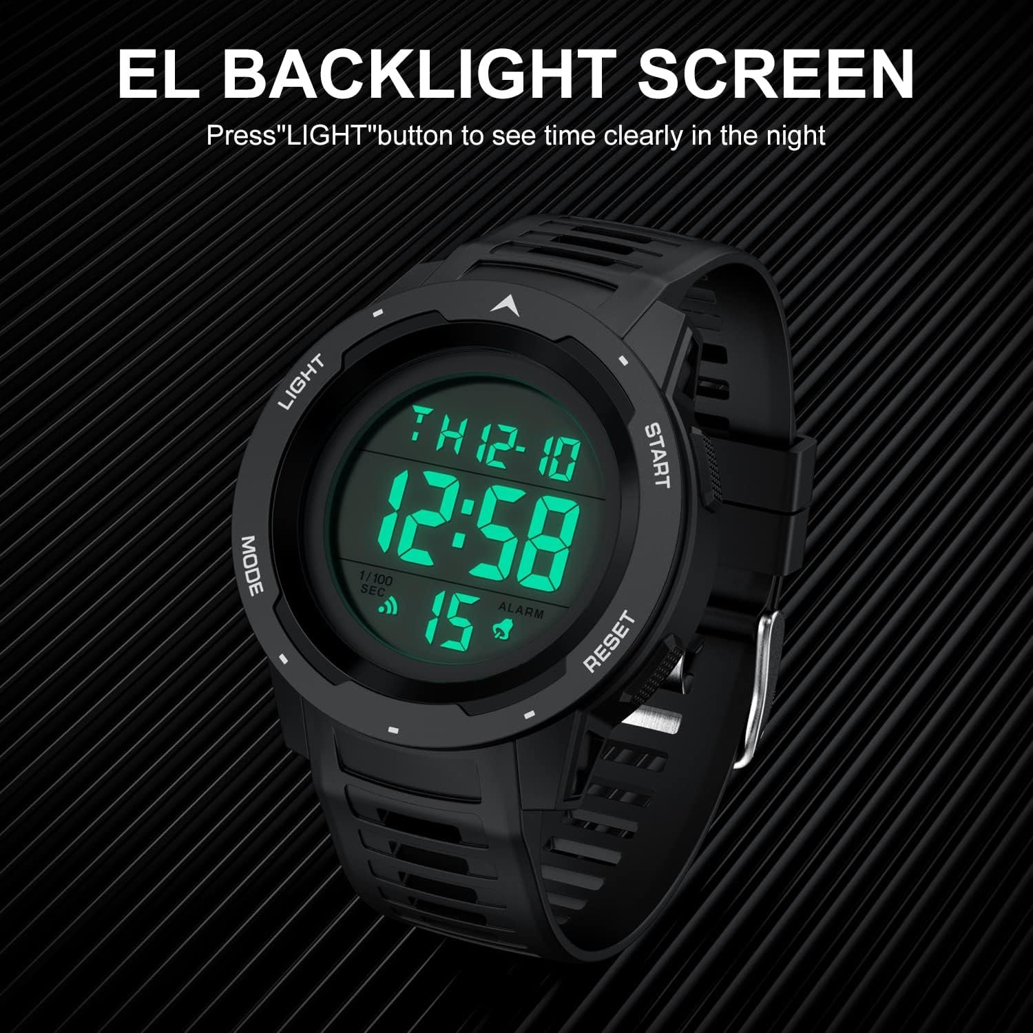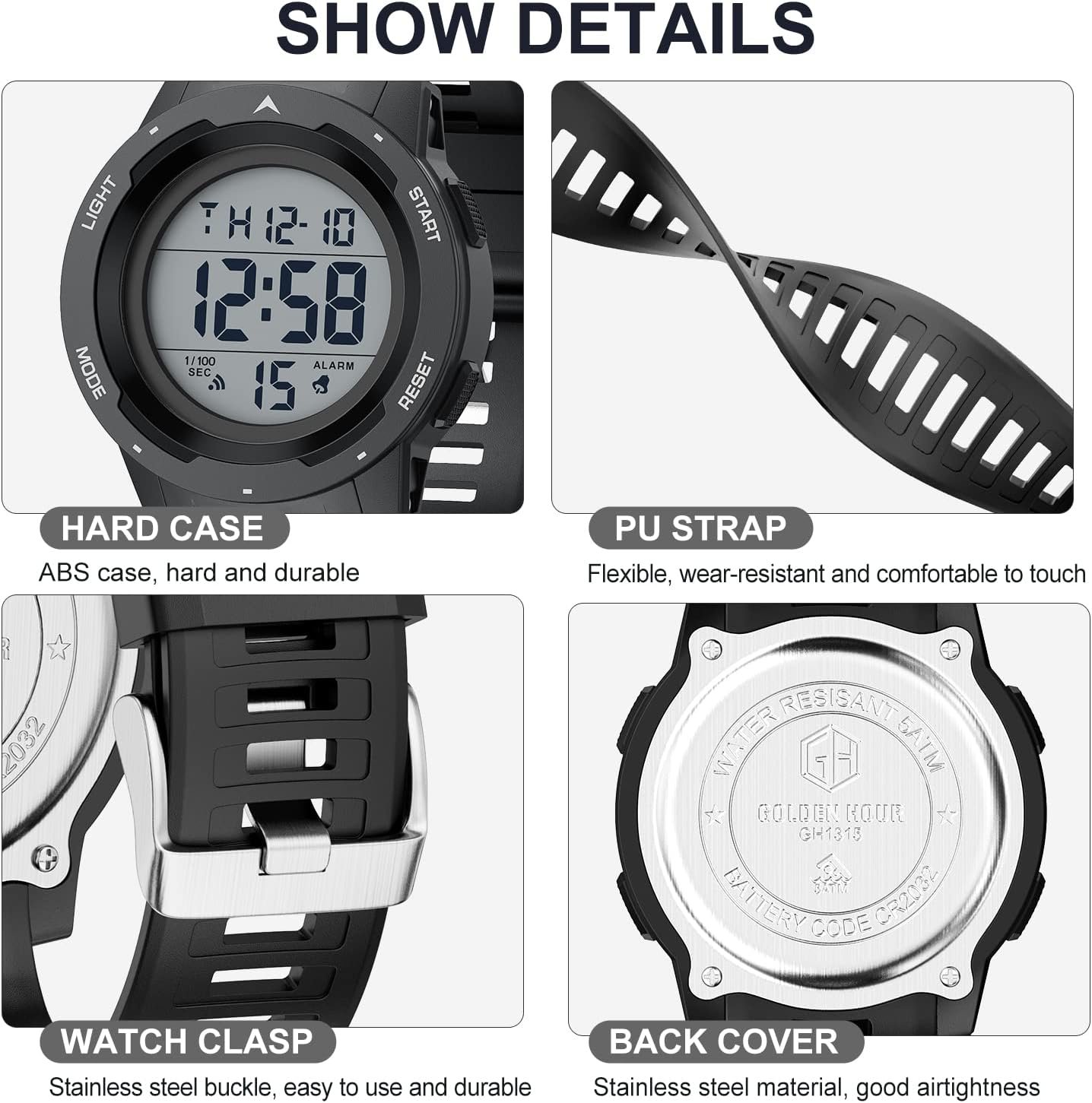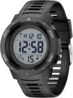 GOLDEN HOUR Mens Waterproof Digital Sport Watches Wide Screen Easy Read Display Military Style with Rubber Strap