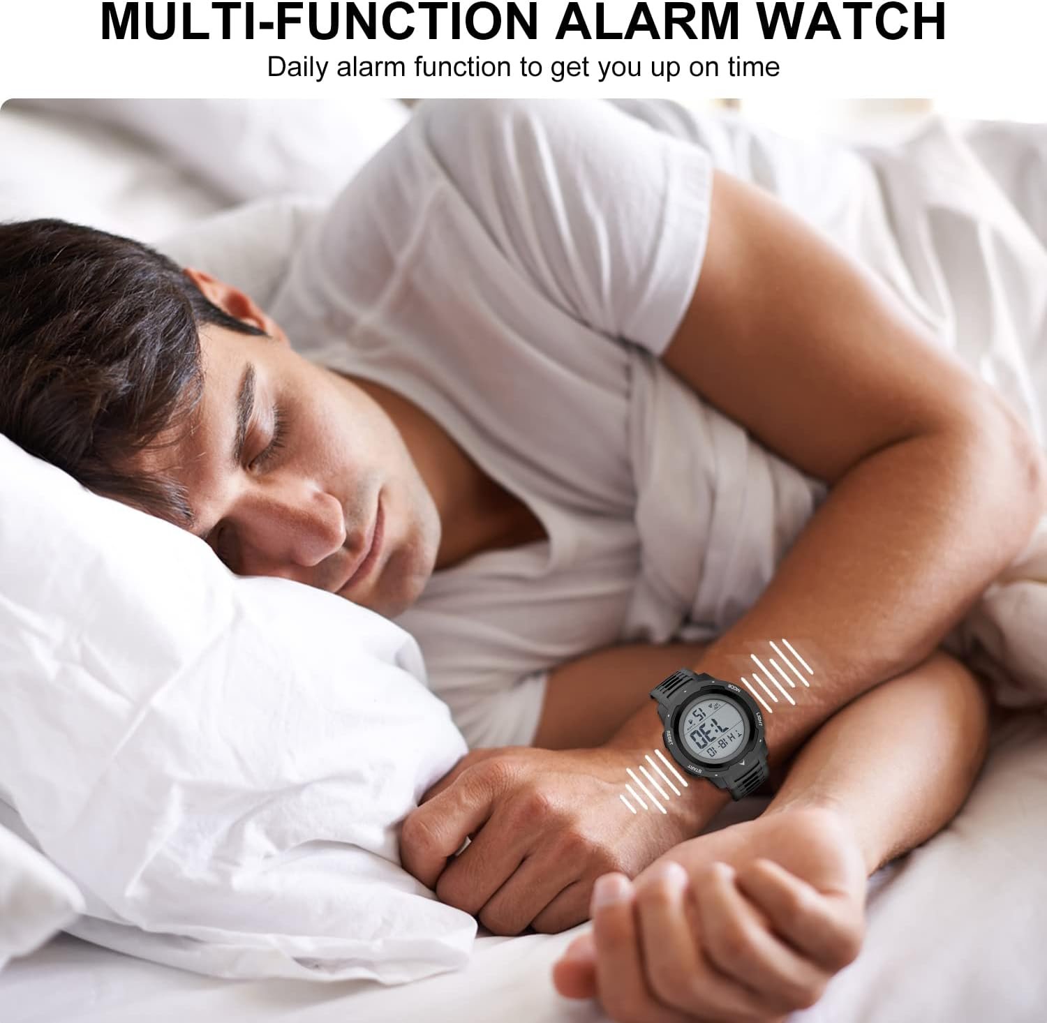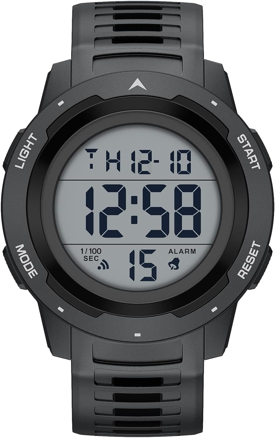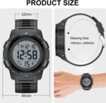 Adjustable black 170mm-245 resin strap fits up to 9.0-inch wrist circumference, Black 50mm resin case with acrylic lens,easy to read.Suitable for men, especially to those who like doing sports, multi-functions make it perfect for both outdoor and indoor sports, such as running, climbing, fishing and so on