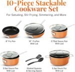 Space Saving: The Gotham Steel revolutionary new stackable design allows you to easily organize your cabinets & kitchen by stacking and nesting the entire cookware set together, saving you 30% more space & freeing up precious cabinet space while making storage a problem of the past.