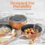 Durable and Lasting: With an aluminum exterior triple coated and reinforced with titanium and diamonds, each piece of cookware is durable enough to withstand metal spatulas, spoons, whisks and even electric beaters, ensuring your cookware stays virtually brand new for years to come.