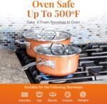 Stovetop & Oven Safe: Each pot and pan is oven safe up to 500 degrees and compatible with all types of stovetops- Gas, electric, halogen, ceramic, and induction – allowing you to cook virtually anywhere you’d like.